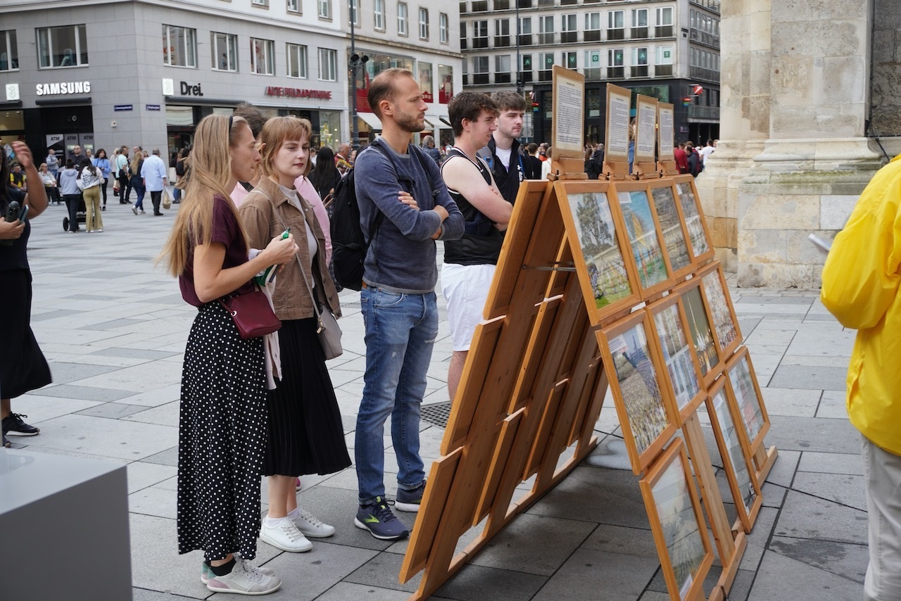 一位来自维也纳附近的女士说:“如今,人们会仅仅因为打坐而受到迫害,这简直令人难以置信!”关于与中国的关系,她说:“只考虑经济而不考虑人权,这是错误的做法!”