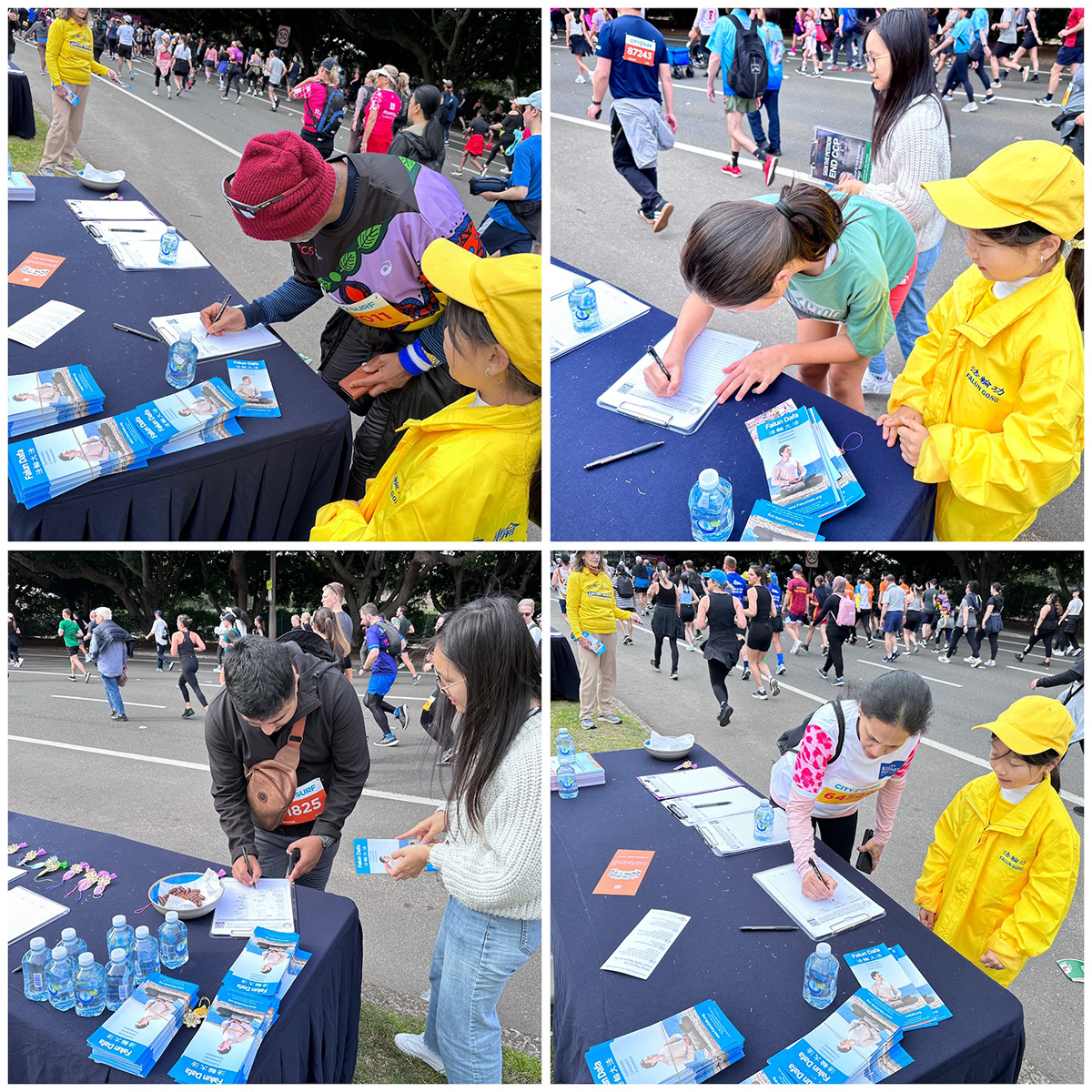 ![]() 图7~11:许多赛跑者经过法轮功学员的活动场地,纷纷前来签名支持法轮功反迫害。 |