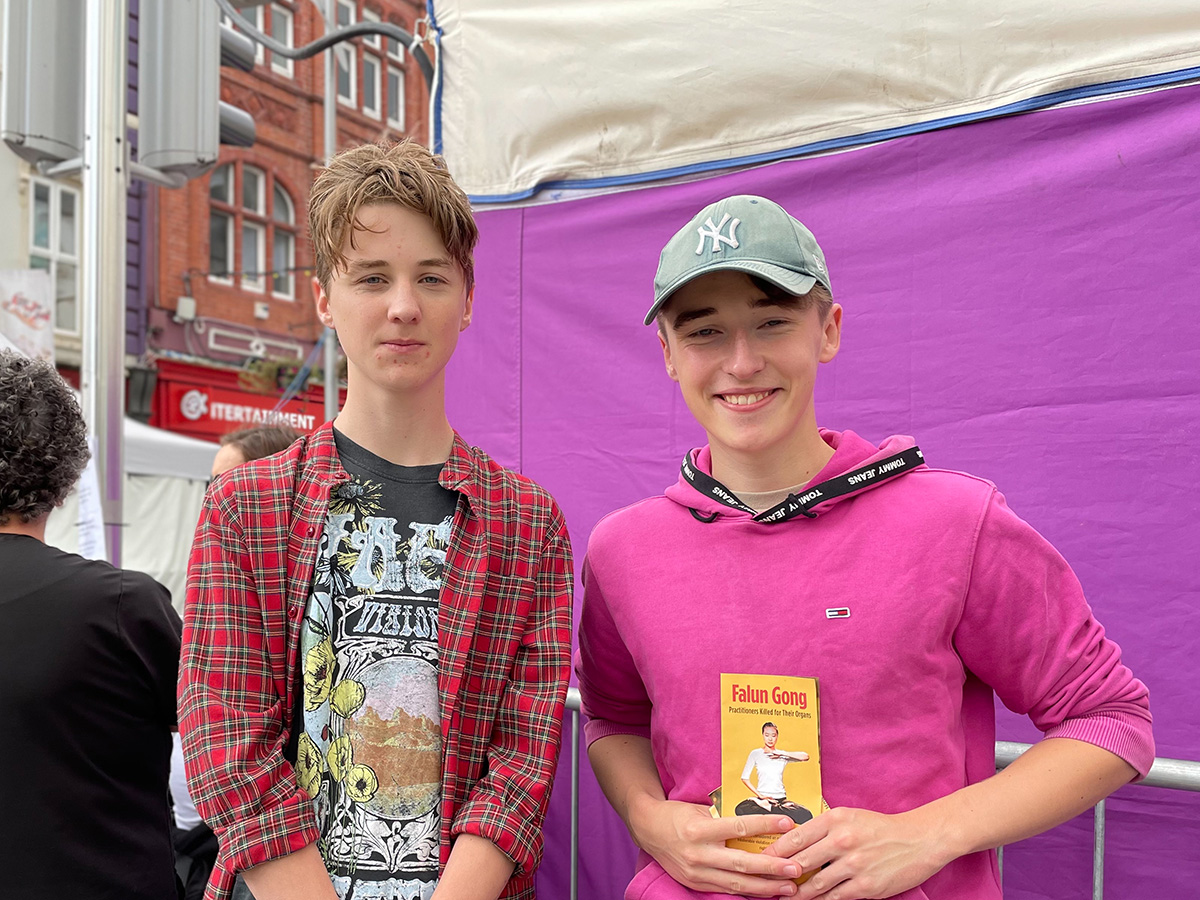 凯瑞(Ciaran)和唐尼卡(Donncha)在信息桌旁与学员聊了许久。凯瑞说他知道中共从一九四九年篡权政权后,就象俄共一样,杀了数以百万计的国人,迫害许多信仰团体和异议人士。 他说:“这真令人无法接受!”