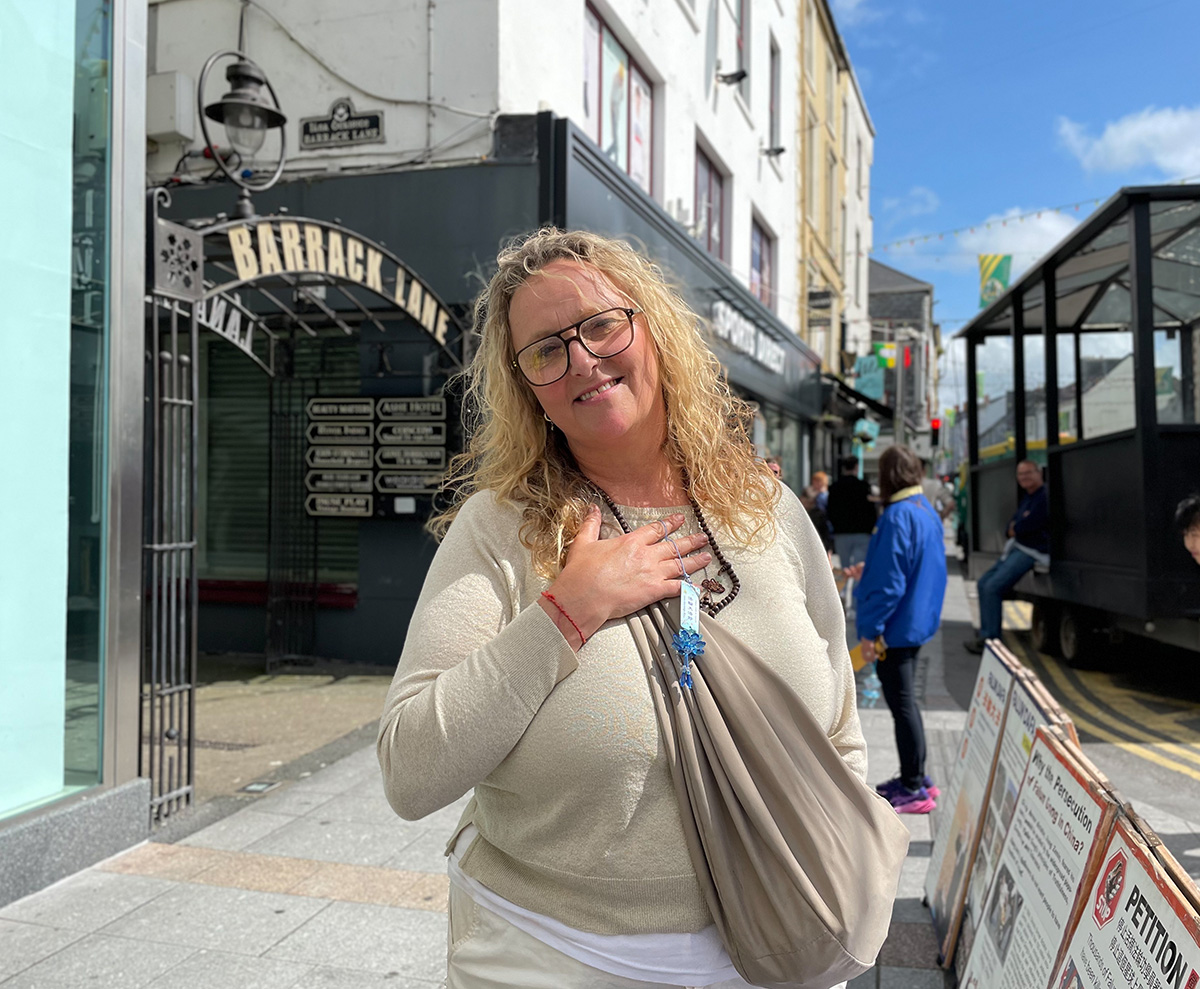 伯纳黛特(Bernadette)住在北部的劳斯郡(Louth),与女儿一起在这里度假。伯纳黛特信仰天主教,听到法轮功遵循的准则是真、善、忍,她感到很亲切,因为她在生活中一直保持善心,也告诉身边的人要善待他人。