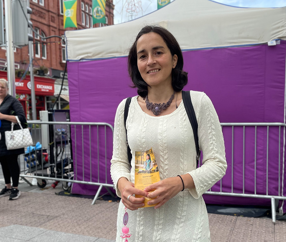 来自西班牙的玛莉亚(Maria)是一名幼教老师,她表示人应该有信仰自由,“不能应该因为自己的信仰就受到迫害”。在签名支持学员反迫害后,尝试学炼了第五套功法。