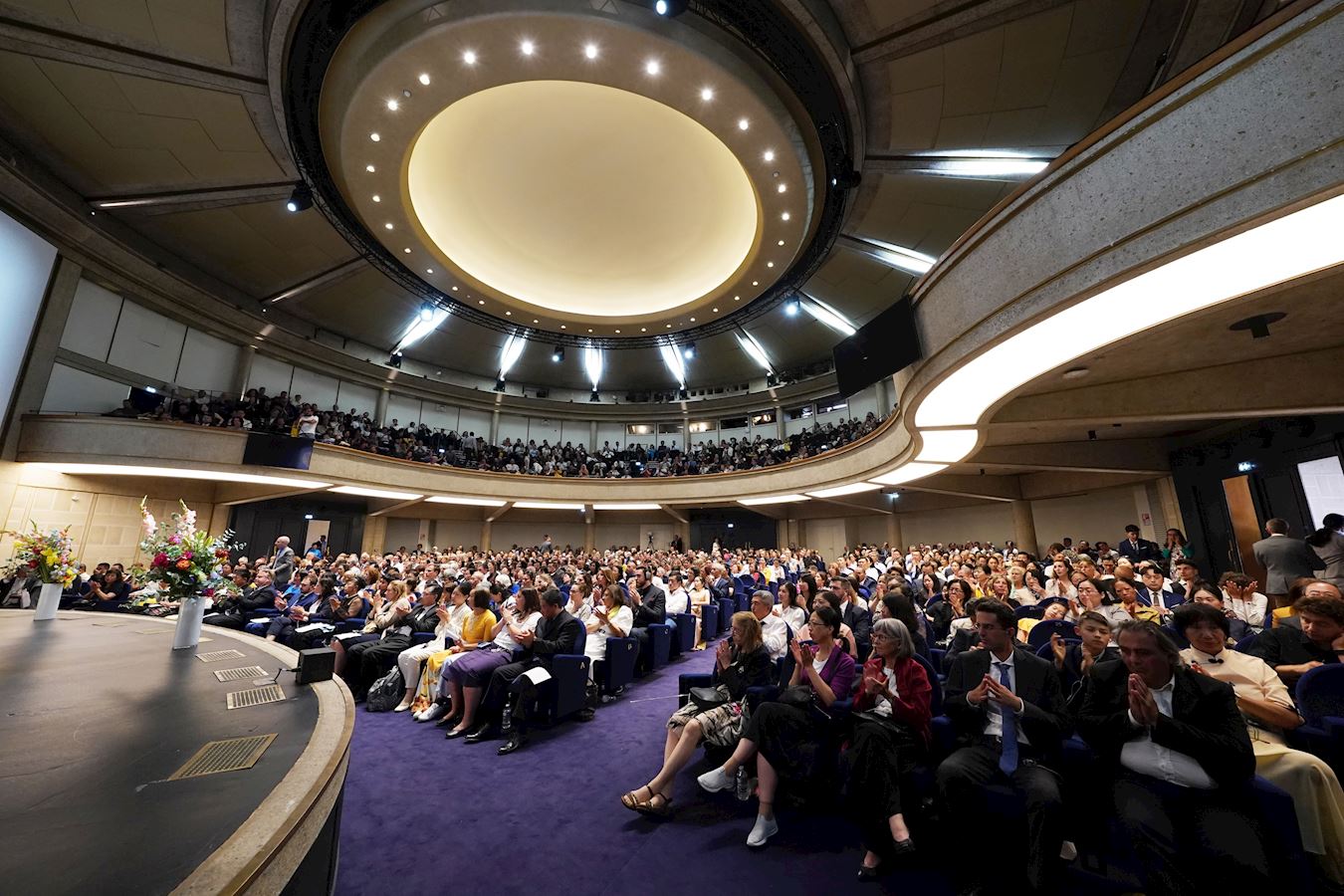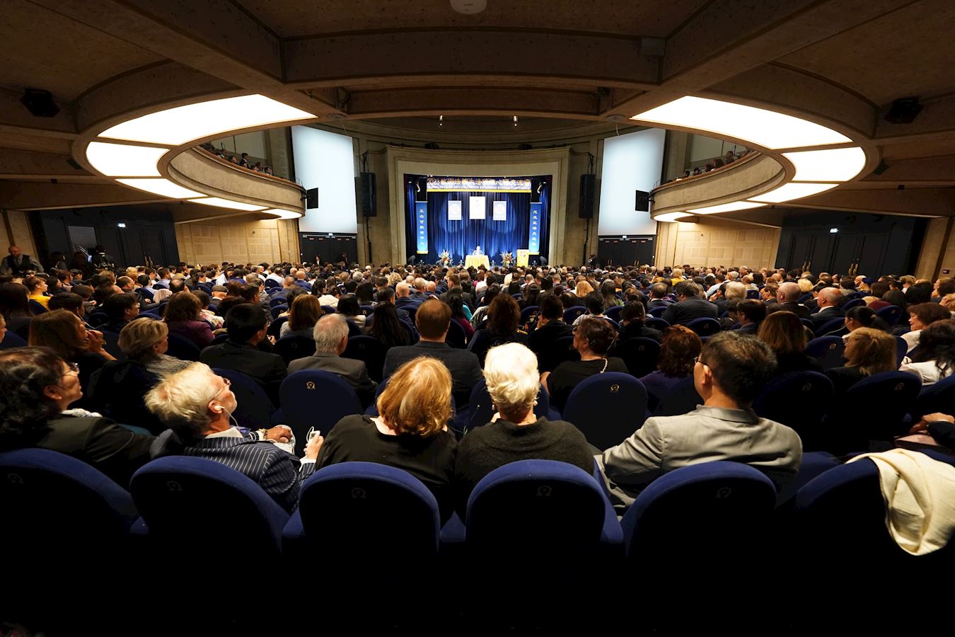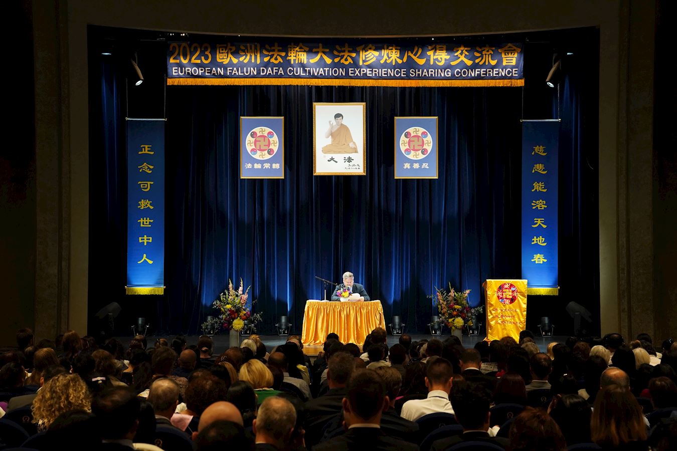法会分设四个会场。来自德国、意大利、西班牙、法国、以色列、瑞典、奥地利、俄罗斯、英国和拉特维亚的二十四位法轮功学员在法会上发言,分享了他们在参与主办和推广神韵、媒体工作和证实法的各个项目中,面对困难和矛盾时向内找,信师信法,去掉人心和观念,做好项目的修炼体会。他们中有修炼了近三十年的老学员,也有刚踏入修炼一年的新学员。学员们也表达了对师尊的无尽感恩,对助师正法,救度众生感到责无旁贷。
