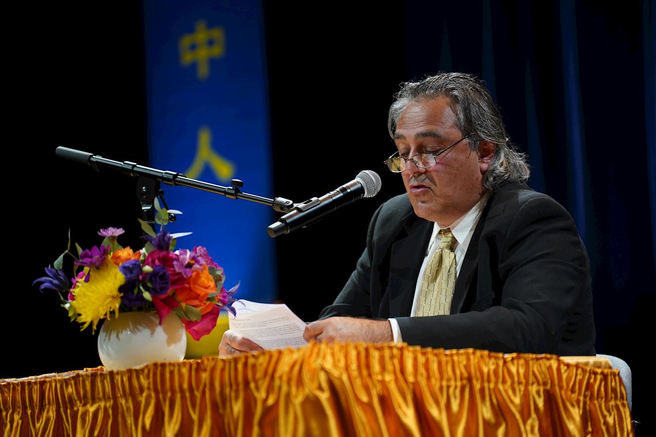 诺尔(Nöll)先生二十六年前与法轮功结缘,聆听了李洪志师父一九九八年在德国法兰克福的讲法后,坚定地走入了修炼。作为警官,当二零零七年神韵艺术团第一次来德国演出时,艺术团的安保协调自然而然落在了他的身上,这一干就是十六年。他从开始的被动接受任务到现在能主动为神韵演出着想,从遇事抱怨到配合各方需求迅速解决出现的各种困难,诺尔的体会是:“出现的困难大多与提高心性紧密相关。”