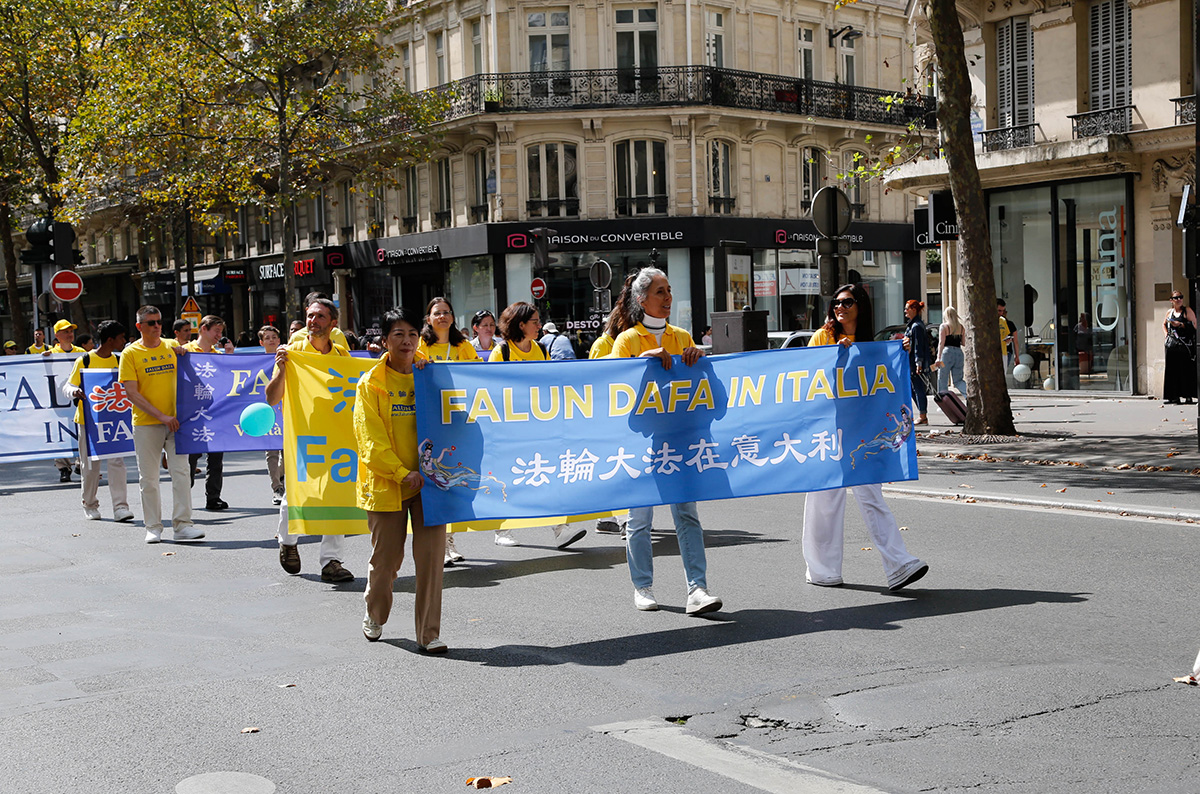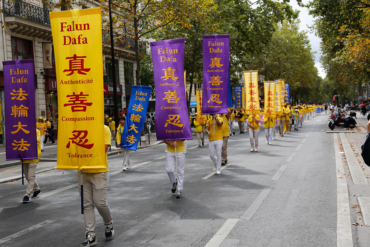 ![]() 图1~12:二零二三年八月二十六日,上千名法轮功学员汇聚在巴黎,分别市中心和巴黎十三区中国城举办游行,传播法轮功的真相。 |
