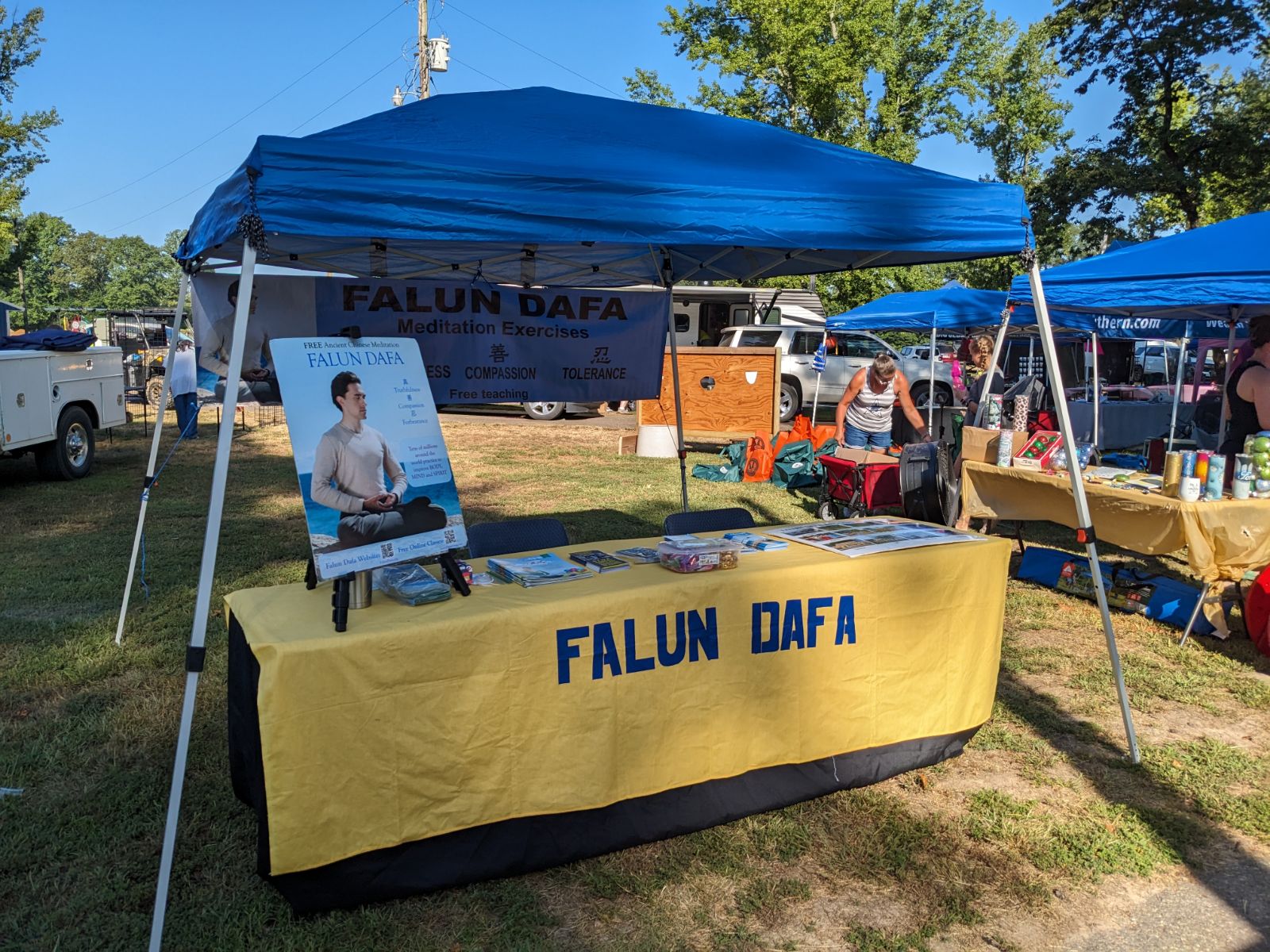 【明慧网二零二三年九月十四日】迪尔克斯城是美国阿肯色州的一个偏远小城市,它离州府小石城大约两个小时。迪尔克斯人口只有916人。为纪念它的伐木遗产,这个小城每年在八月份第一个周六举办一年一度的松树节。这是一个适合整个家庭参与的节日。每年会吸引很多周边城镇的居民来参加。今年来自小石城的法轮功学员第一次参加这个活动。