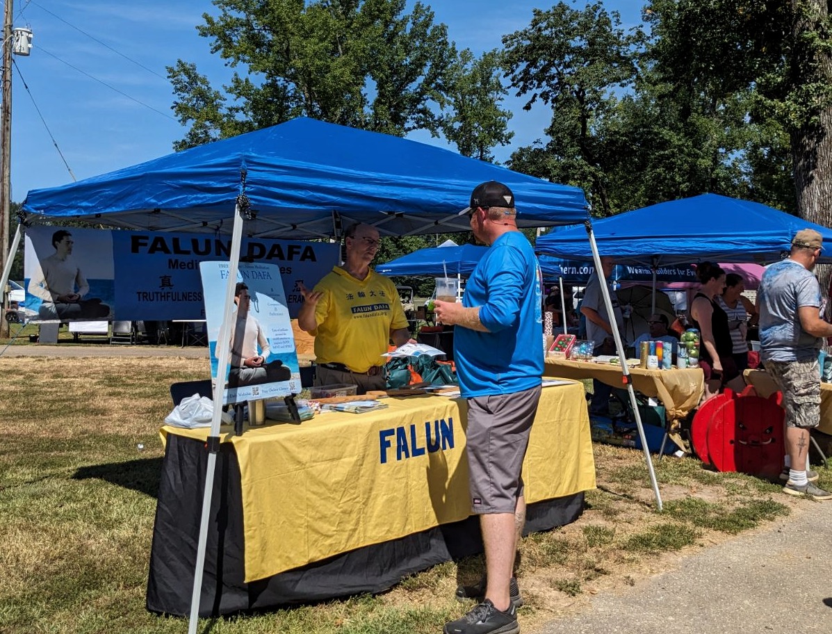 ![]() 图1:二零二三年八月五日,小石城的法轮功学员参加了迪尔克斯举办的一年一度的松樹節,设立展位,传播法轮功的真相。 |