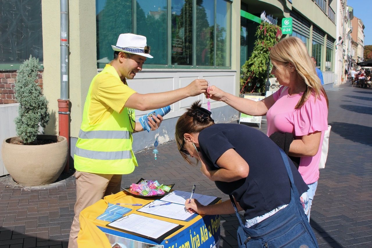 在这次活动中,卡塔琳第一次听说法轮大法在其发源地中国遭受的迫害。这么好的修炼方法遭受如此残酷的迫害,让她深感震惊,她也很高兴有机会在请愿书上签名支持学员。