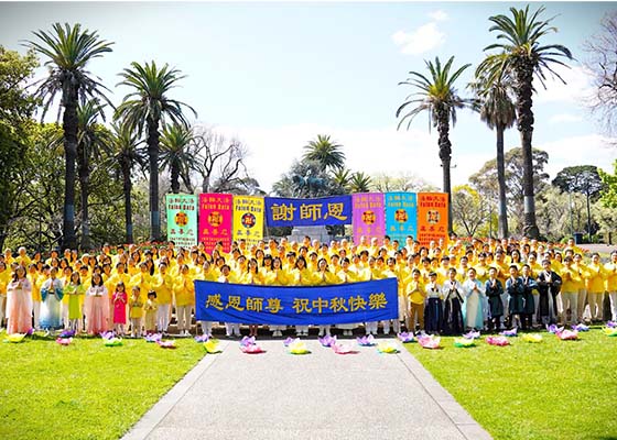 中秋佳节前夕,部份澳大利亚南澳州法轮功学员汇聚在阿德莱德市中心公园,恭祝师尊中秋节快乐。