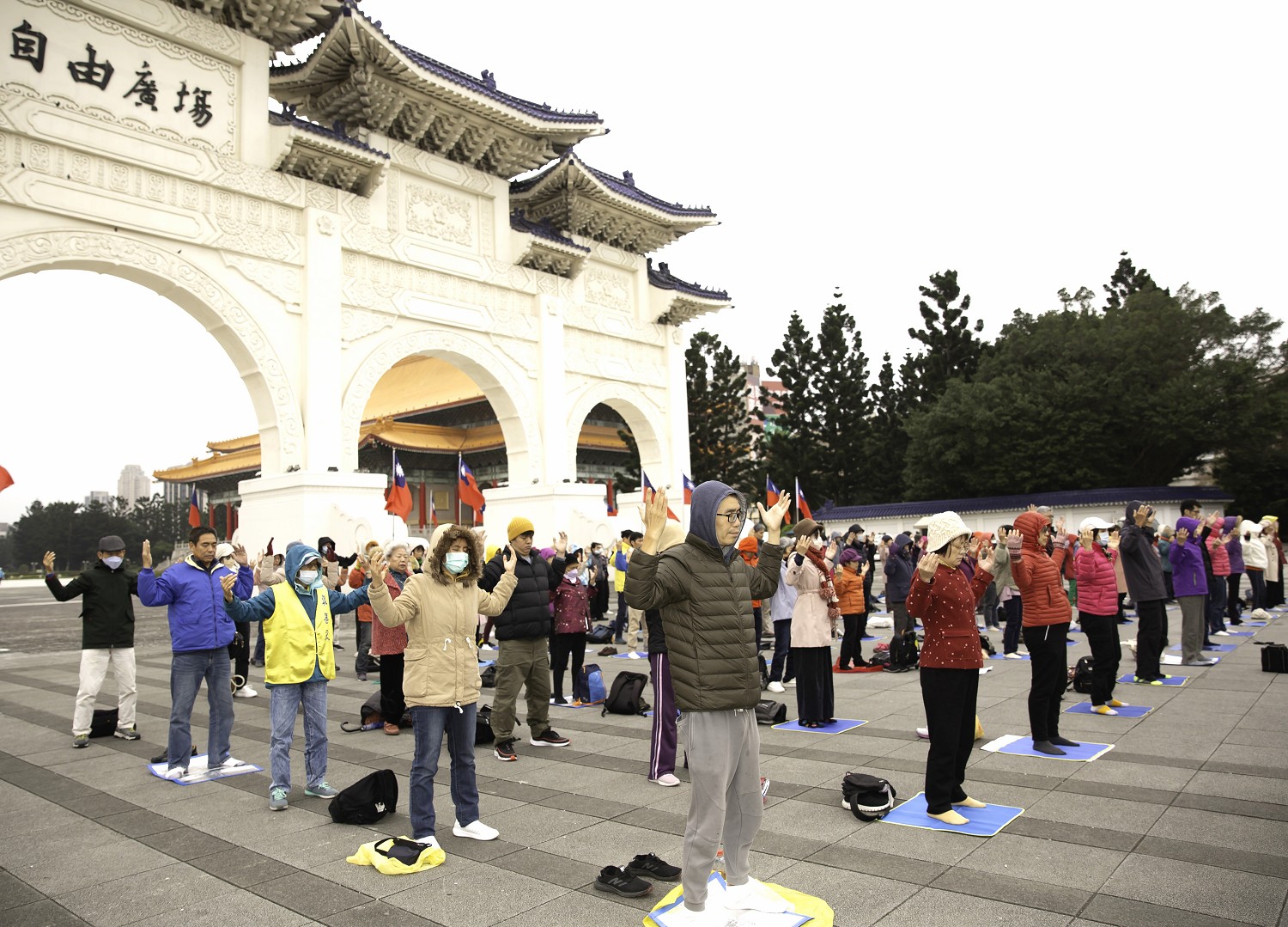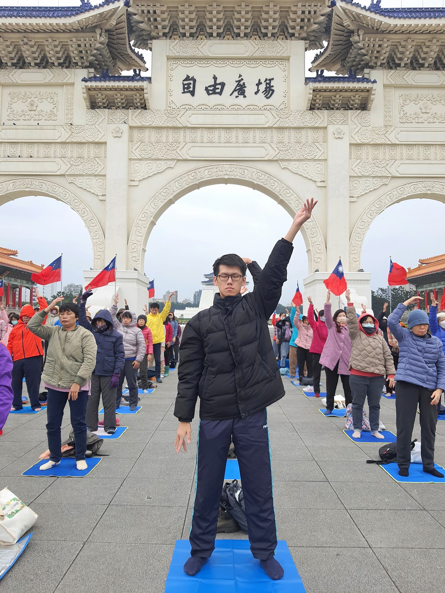 <英文版: https://en.minghui.org/html/articles/2024/1/4/214166.html>元旦伊始 台北学员自由广场集体炼功谢师恩