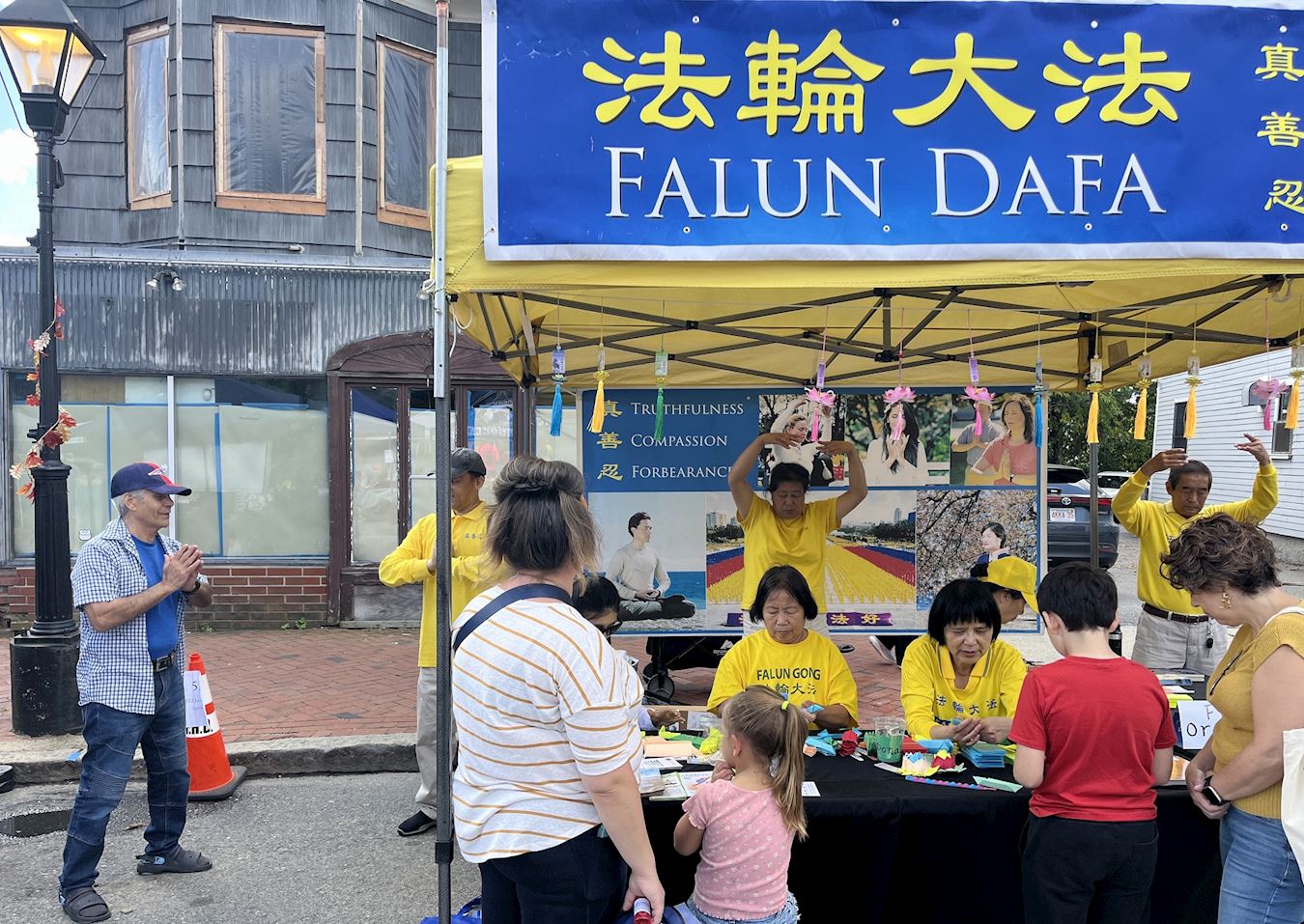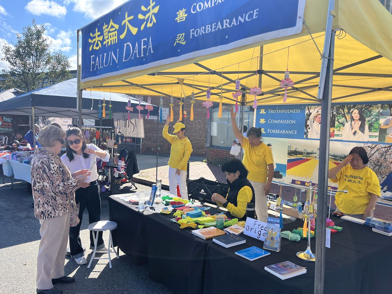 【明慧网二零二四年十月十三日】在二零二四年十月五日星期六,部分美国麻萨诸塞州的法轮功学员参加了梅休因(Methuen)的巿镇节庆祝活动。学员们在法轮功的展位上向参观者演示优美的功法动作,同时向人们介绍法轮大法,并揭露中共对法轮功学员的迫害,征集支持法轮功保护法案的签名。