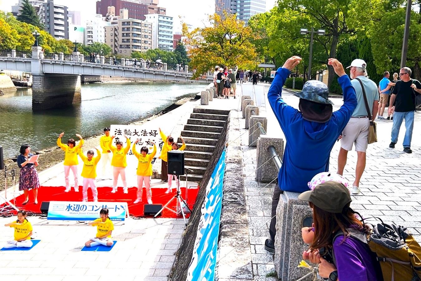 广岛有“水都”之称。水滨音乐会是广岛市利用得天独厚的水滨魅力,创造了生机勃勃的水滨区域吸引游客。当地法轮功学员曾多次参加该音乐会,受到好评,本次再度受到邀请。