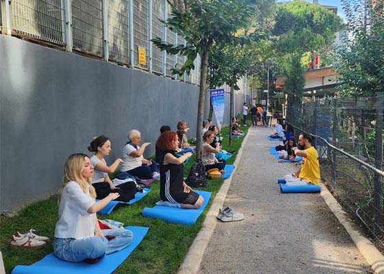 伊斯坦布尔法轮功学员9月28日受邀在卡德柯伊的生态生活中心弘法,当地民众踊跃学炼法轮功五套功法,并表示打坐炼功带给他们美好体验。