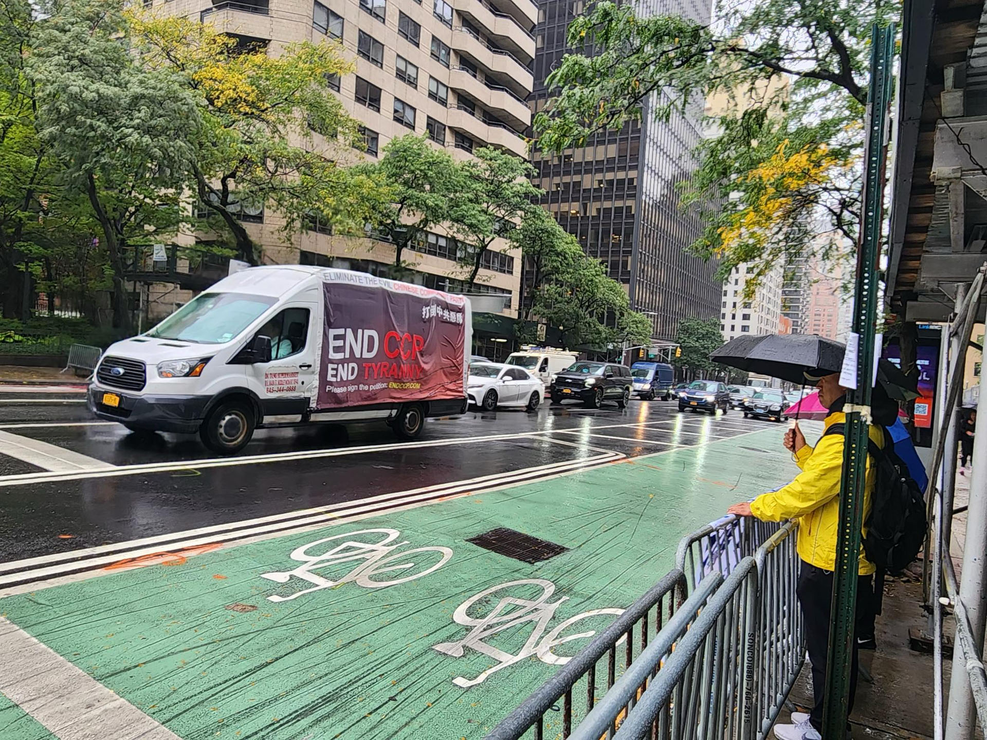 ![]() 图4:法轮功学员在联合国峰会期间进行“停止迫害”车游,呼吁世界各国认清中共本质,呼吁制止中共对法轮功学员长达二十五年惨无人道的残酷迫害。 |