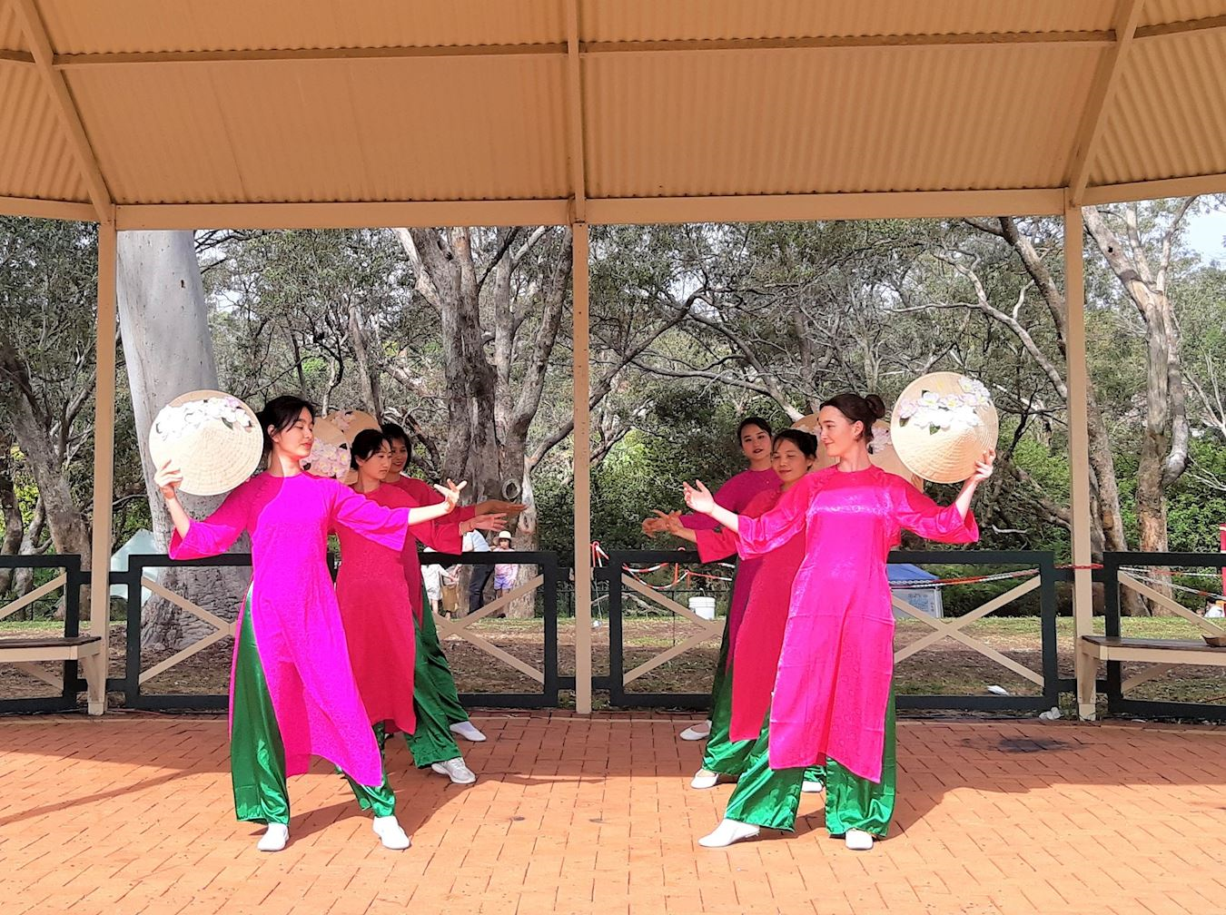 ![]() 图6:二零二四年十月十九日,在凯尔姆斯科特农展会上,法轮功学员在表演越南斗笠舞。 |