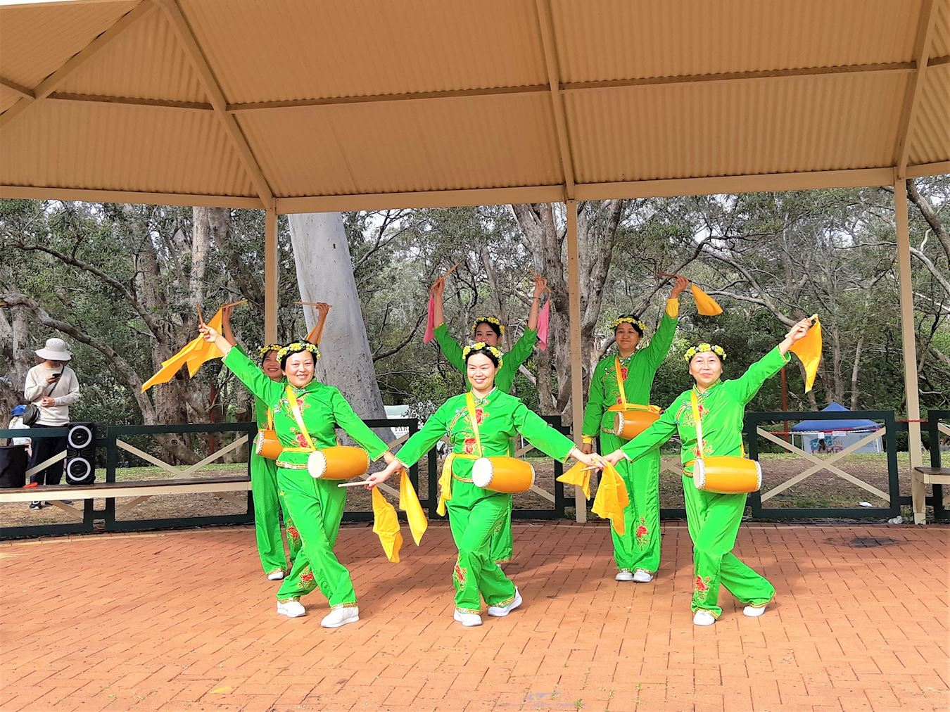 ![]() 图7:二零二四年十月十九日,在凯尔姆斯科特农展会上,法轮功学员在表演中国腰鼓舞。 |