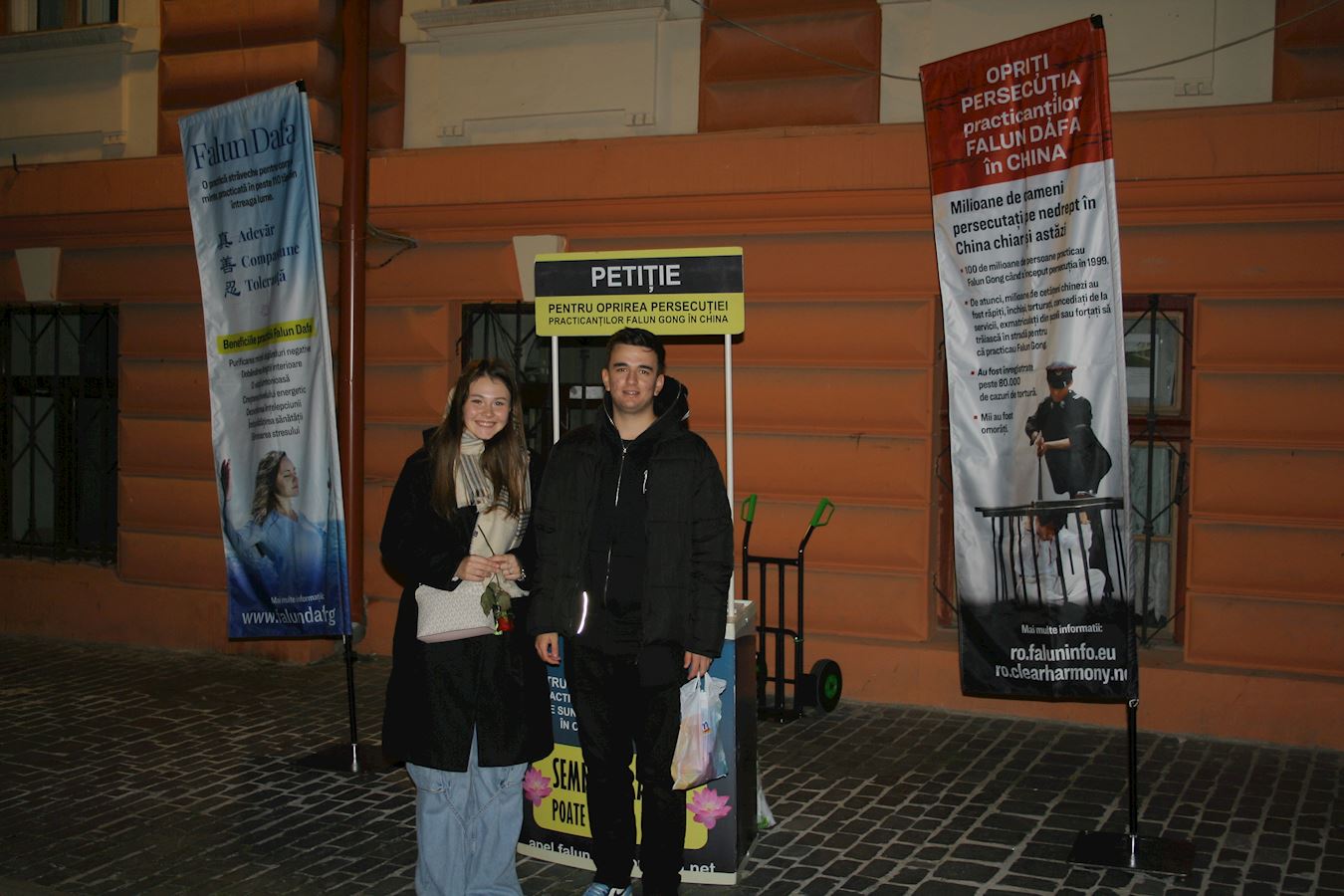 来自普洛耶什蒂(Ploiești)的玛丽亚·杜米特鲁(Maria Dumitru)和雷奥纳德·约内斯库(Leonard Ionescu)是布加勒斯特大学(University of Bucharest)的学生。二零二四年十月十九日,他们也在呼吁制止中共迫害的请愿书上签名。
