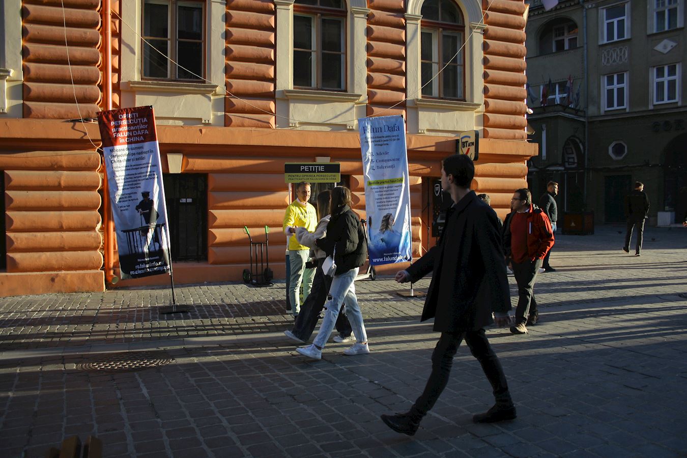 【明慧网二零二四年十一月一日】二零二四年十月十九日和二十六日,罗马尼亚部分法轮功学员来到布拉索夫(Brasov)的老城中心,向当地居民和外来游客分发真相资料,并在呼吁停止迫害的请愿书上征集签名。