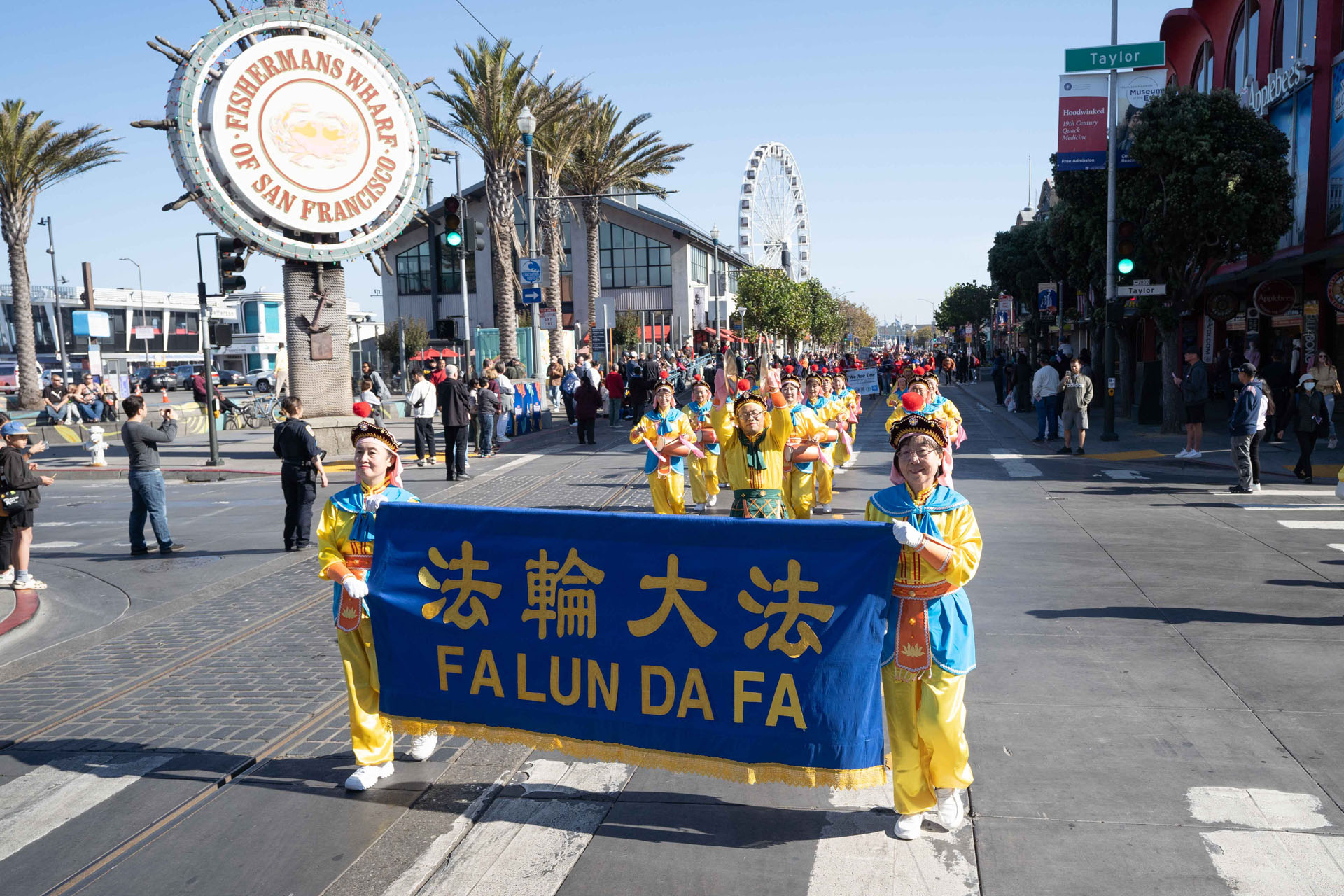 当天上午十一点,游行在风景秀丽的旧金山渔人码头附近举行,队伍从恩巴卡德罗大道(Embarcadero Blvd)出发,一直走向杰佛逊街。队伍除了美国的海军、陆军、空军,也有各式特色的乐队、旗队,有数万人参加游行。