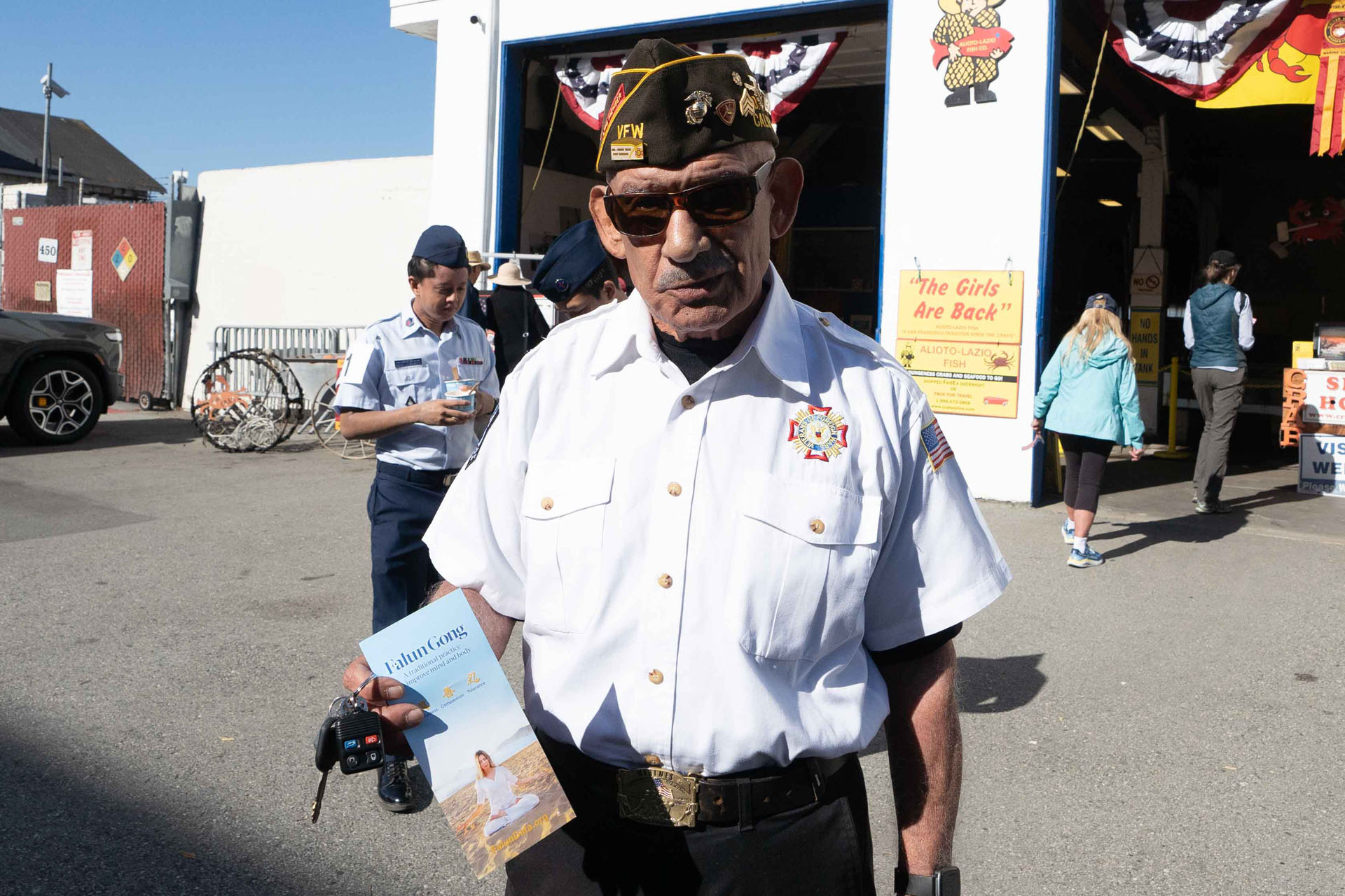 越战老兵曼尼·桑切斯(Manny Sanchez)说,“很高兴看到法轮功学员参加游行,他们协调一致,希望他们今后还能来参加游行。我们应该相互扶持。”