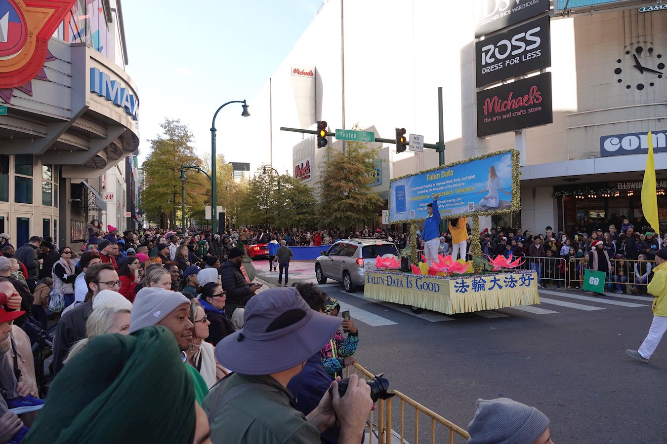 麦克(Michael)说:“法轮功的游行队伍中有一个大花车,非常平和,非常美好。他们把真、善、忍带到社区,这很好。”