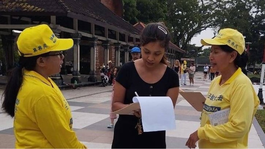 路过活动现场的英德拉瓦蒂(Indrawati)说,这是她第二次签名支持法轮功。她得知中共用强摘器官等惨无人道的手段迫害法轮功学员,内心再次受到触动,于是再次签下自己的名字,希望这场迫害尽快停止。