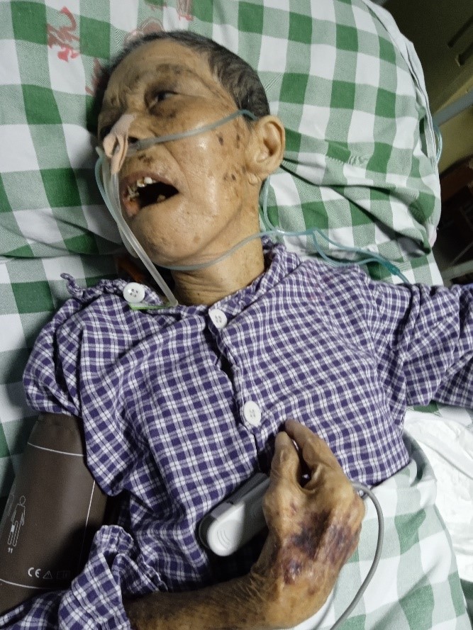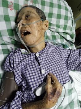 她就是广东省揭阳市85岁的法轮功学员姚静娇。随车的狱警说,姚静娇右腿骨折合并多器官衰竭,生命危在旦夕,现交还家属。姚静娇老人随即被家属送往揭阳市中医院重症监护室抢救。据悉,出狱前,狱方先后三次向家属勒索三万元,否则不让出狱。