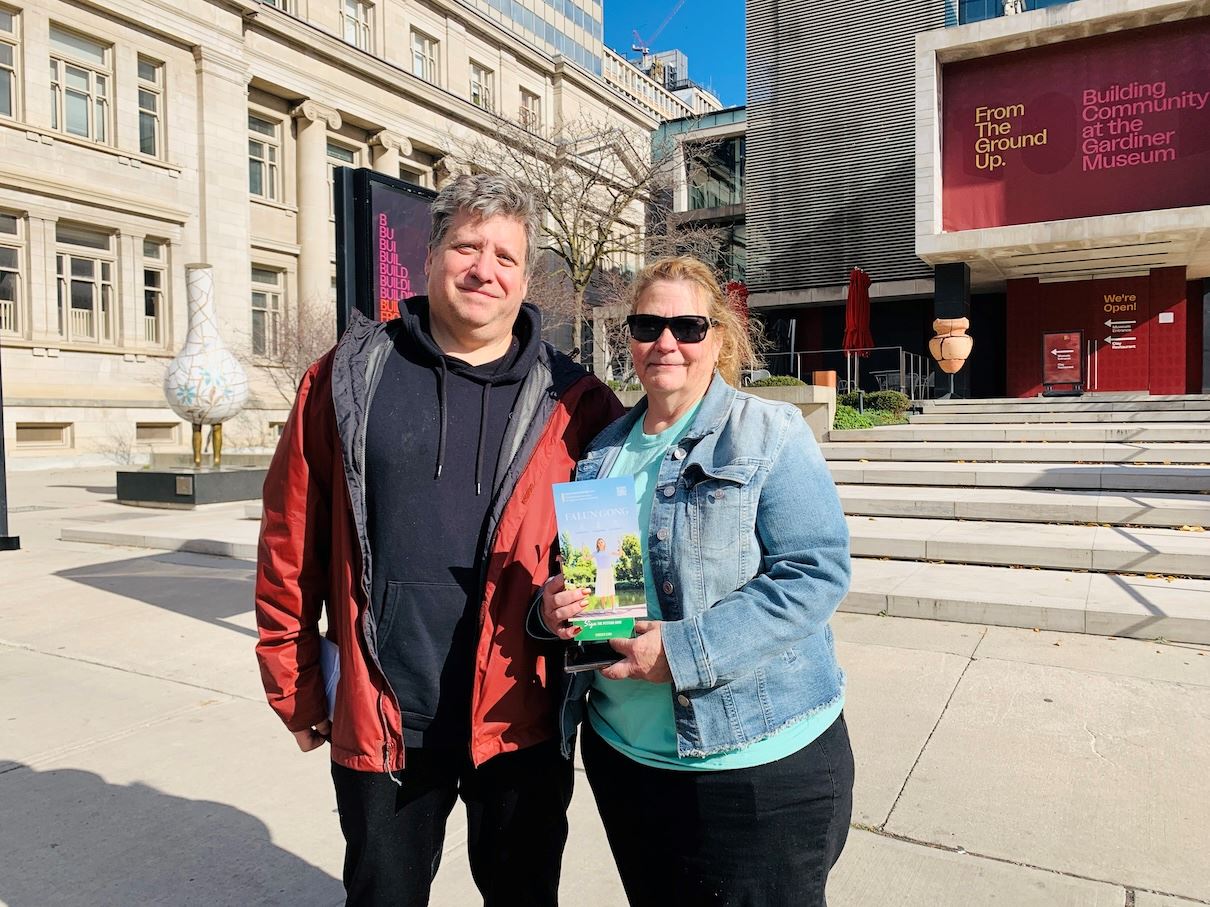 从天津来多伦多探亲的琳达(Linda)女士和朋友第一次看到这么多法轮功学员组织活动。琳达女士表示自己在国内听说过中共宣传的所谓法轮功自焚事件,法轮功学员告诉她自焚事件是中共自导自演,以此为借口打压法轮功。学员还告诉她:“因为中共是恶的,是邪的,才打压信仰真、善、忍的法轮功的。”