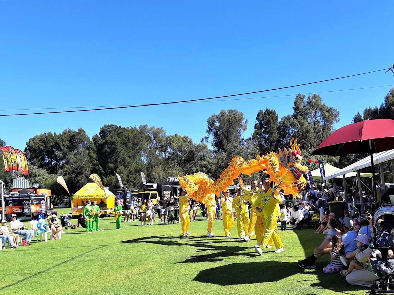 ![]() 图9:西澳法轮功学员在卡琳社区博览会上为观众表演中华传统舞龙。 |