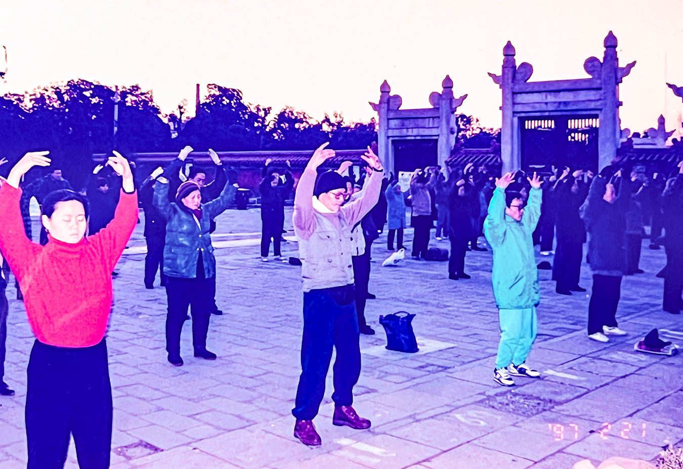 ![]() 图1:邱添喜(中)在北京地坛公园和大家一起晨炼。 |