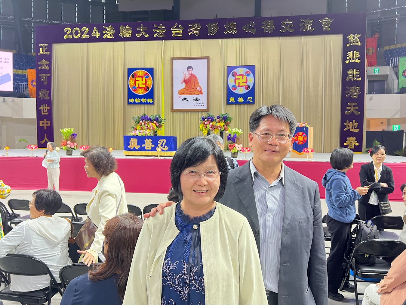 ![]() 图2:邱添喜与太太参加二零二四年台湾修炼心得交流会。 |