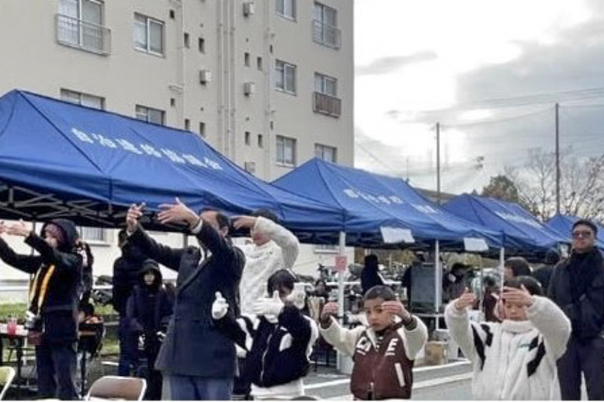 ![]() 图1:二零二四年十一月十日,大阪市东成区庆典活动上的功法展示和跟着学炼的民众。 |