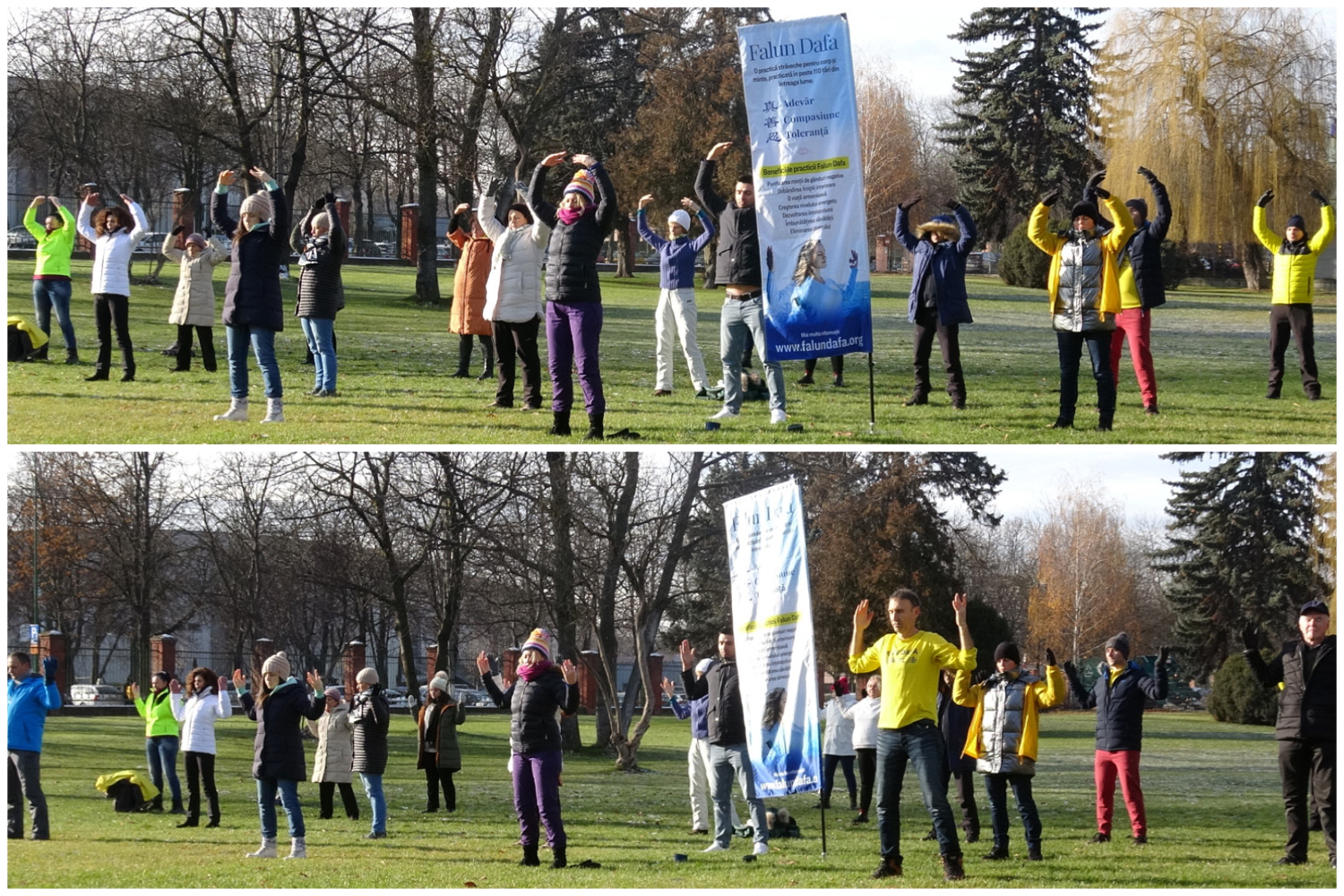法轮功功法展示与腰鼓表演受到热烈欢迎