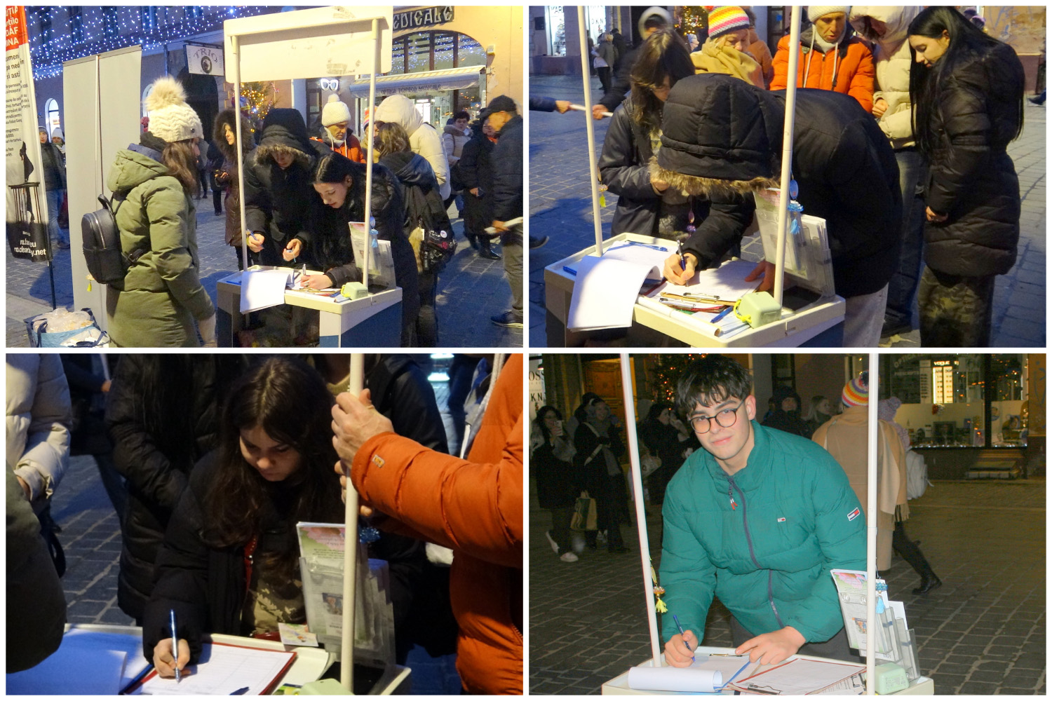 “今天,我们呼吁所有良知尚存的人士携手合作,共同制止中共对法轮功及其他无辜群体的迫害。让我们用勇气与行动告诉世界,正义与道德不可被摧毁。让我们从此刻开始,为人类的尊严与下一代的未来而努力!”