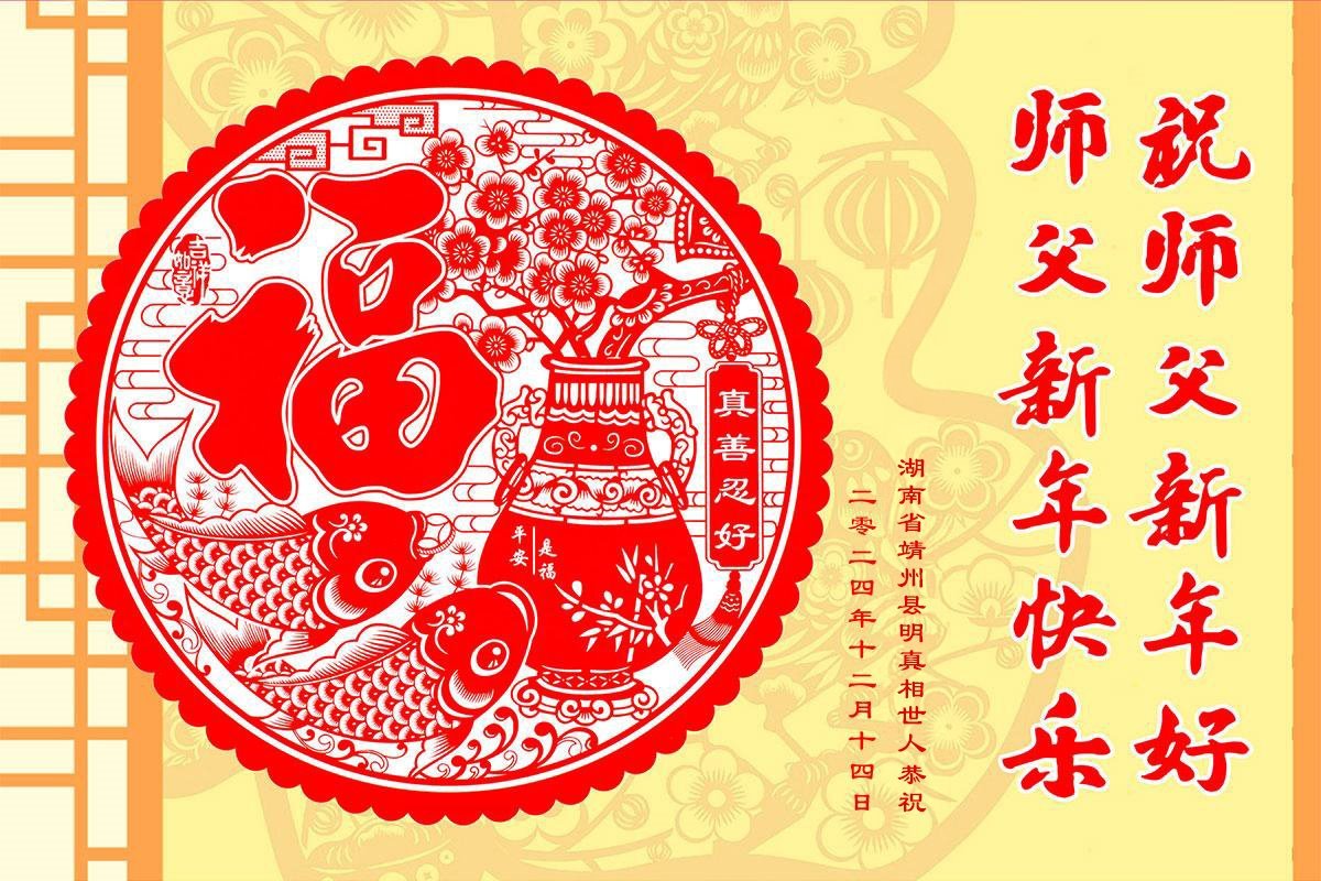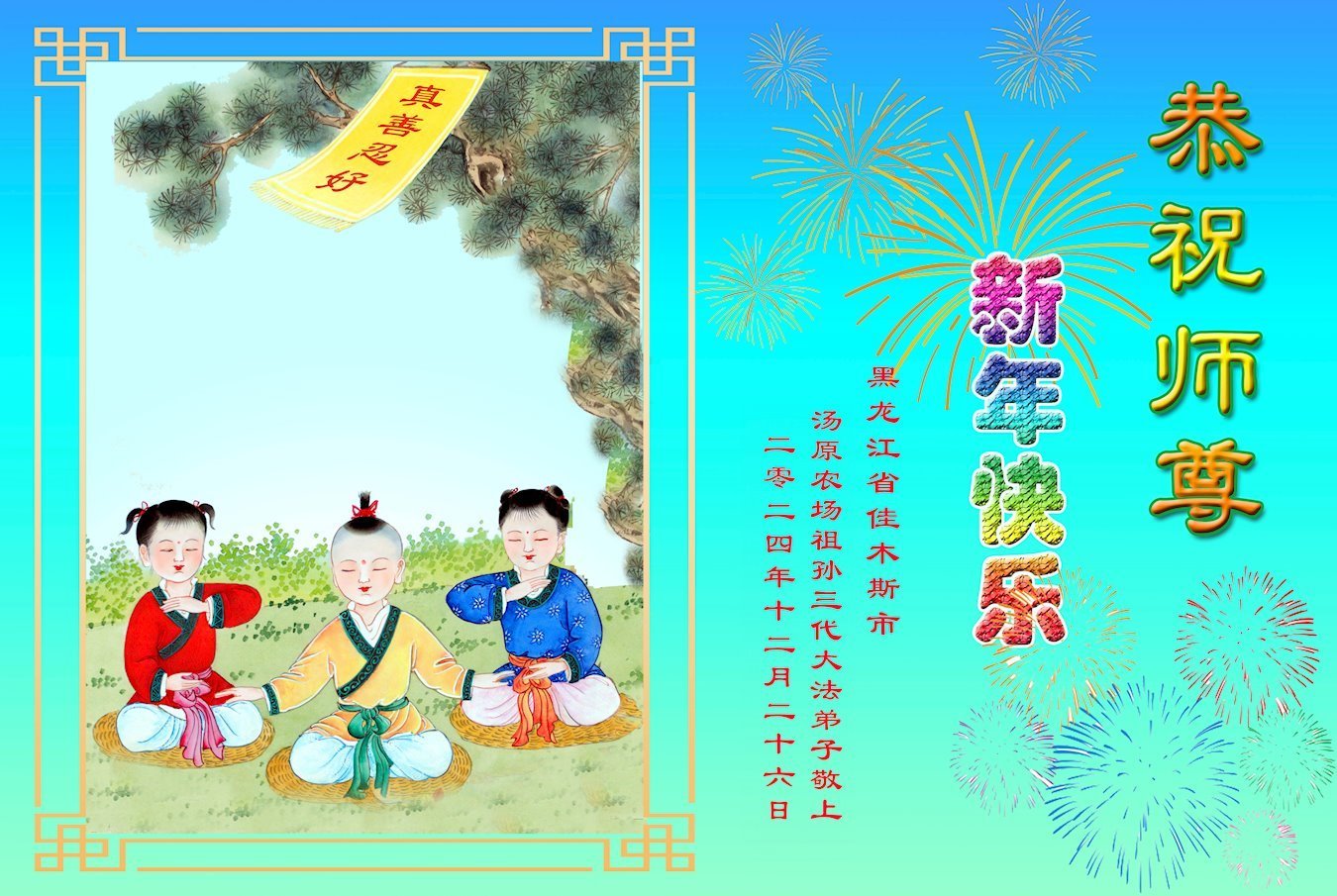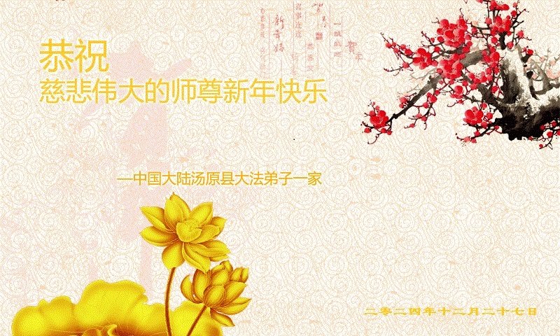 弟子们都表示要精進修炼,随师救度众生。以下是来自黑龙江、吉林、辽宁、山西、山东、河北、河南、安徽、江苏、浙江、福建、江西、湖北、湖南、广东、广西、海南、云南、贵州、四川、陕西、宁夏、青海、甘肃、新疆、内蒙古、北京、天津、上海、重庆等地大法弟子的部份贺词,恭祝伟大的师父新年好!