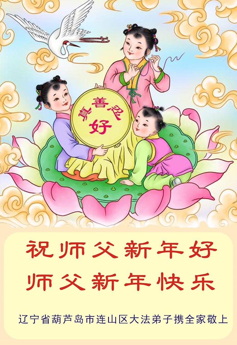 弟子们叩拜师尊,恭祝师尊新年快乐!我们是沈阳市四个学法小组十位大法弟子。我们中有八十多岁的老年大法弟子,也有十二岁的大法小弟子,有修炼二十多年的老大法弟子,也有刚刚走入修炼半年或两年的新学员。我们怀着无比敬仰和无比虔诚之心,给慈悲伟大的师父拜年,恭祝师尊新年好!感恩师尊慈悲苦度!感恩师尊为成就弟子所付出的一切!弟子谨记师尊教诲,学好法,修好自己,加强正念多救众生。共同提高,共同精進,兑现誓约,圆满随师还!