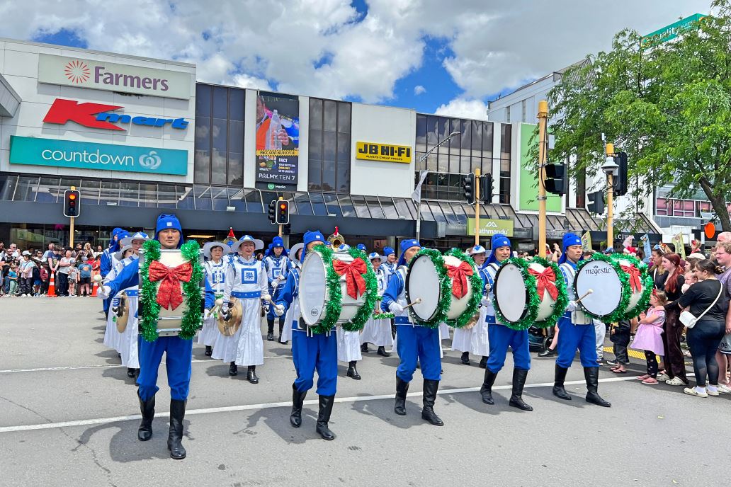 ![]() 图8:二零二四年十一月三十日,由新西兰法轮功学员组成的腰鼓队参加了罗托鲁瓦(Rotorua)的圣诞游行。 |