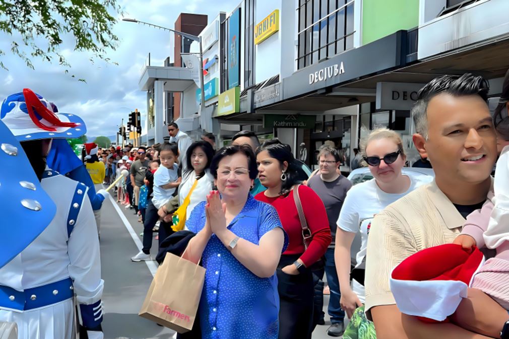 ![]() 图12~13:二零二四年十一月三十日,由新西兰法轮功学员组成的舞龙队参加了奥克兰Manurewa区圣诞游行。 |