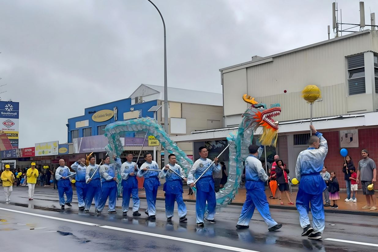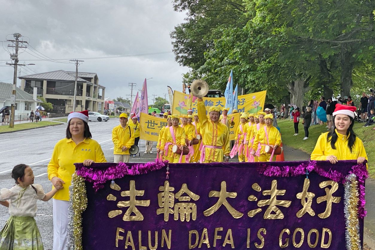六场圣诞游行分别在北帕默斯顿(Palmerston North)、菲蒂昂格(Whitianga)、罗托鲁瓦(Rotorua)、剑桥镇(Cambridge)以及奥克兰Manurewa区、Devonport区举行。其中北帕默斯顿是新西兰的第六大城市;菲蒂昂格是水上运动者热爱的滨海小镇;罗托鲁瓦以美丽的湖泊、森林和地热奇观闻名,在那里,法轮功团体荣获“最多姿多彩(Most Colourful)”奖。
