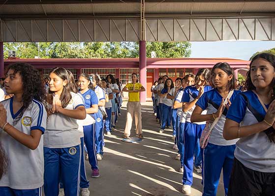 十一月十一日,墨西哥金塔纳罗奥州的法轮功学员来到扎姆纳第十五中学,向六百多名师生介绍法轮大法。学员们展示五套功法,并教大家一起学炼,很多学生和老师对法轮功产生了强烈的兴趣,纷纷表示想要开始修炼。