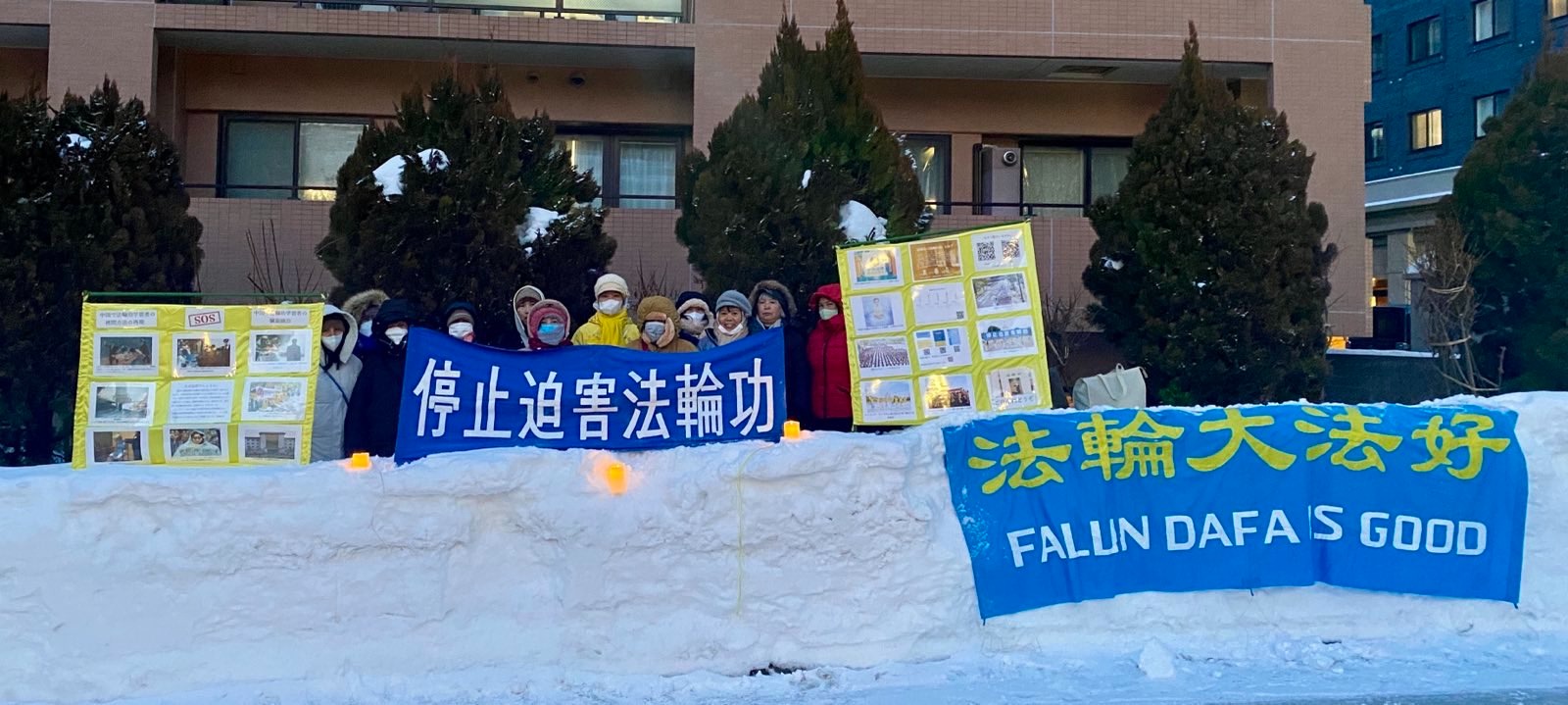 ![]() 图1:部分来自札幌的法轮功学员在中领馆前举行和平抗议活动 |