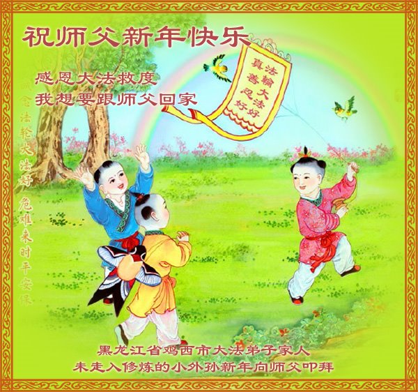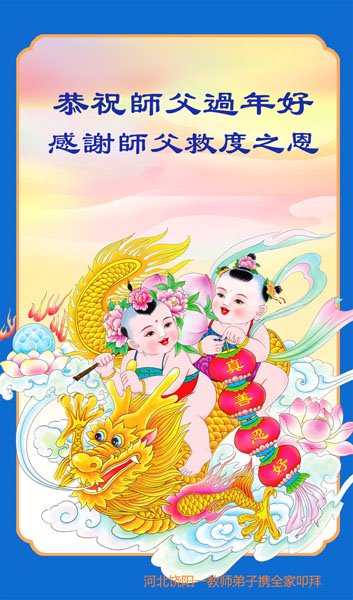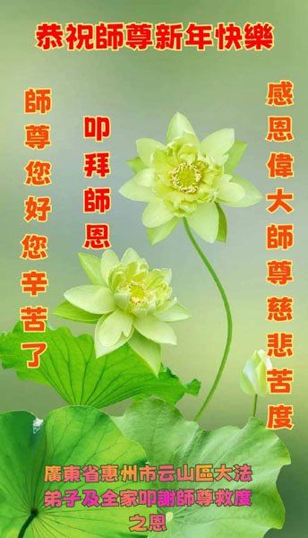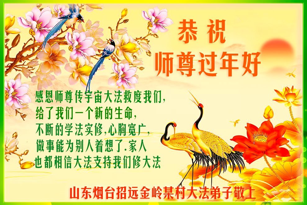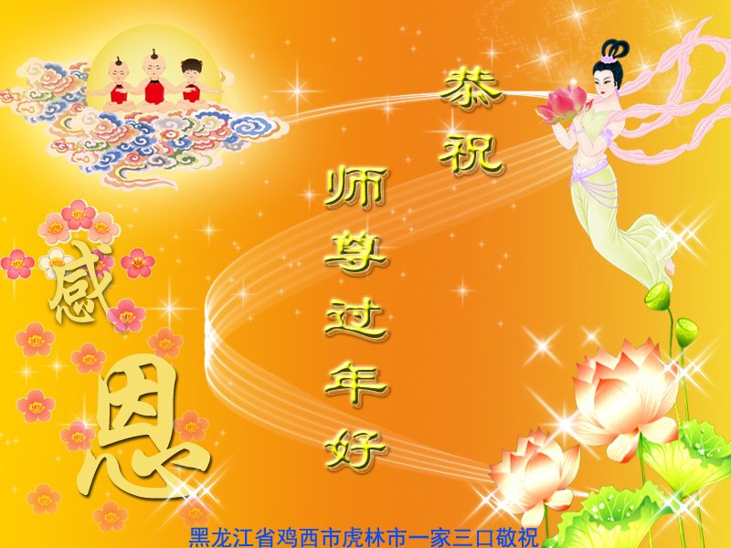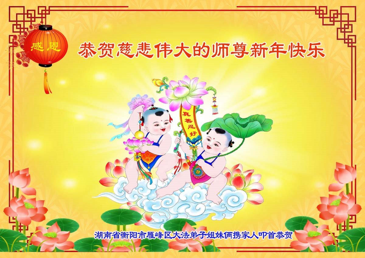 恭祝尊敬的师父新年快乐!希望我们能够提高心性和升华,帮助师父救度众生。