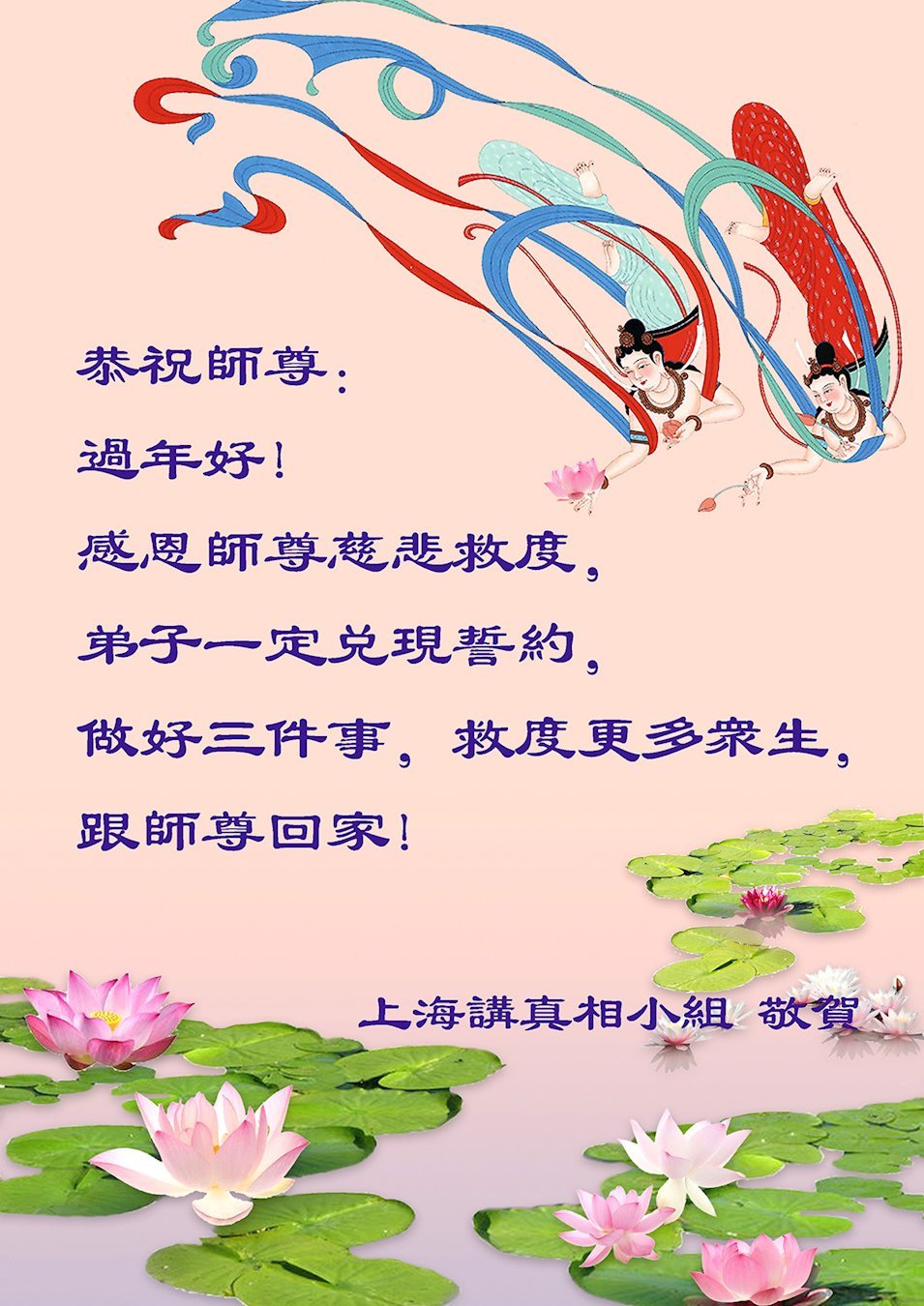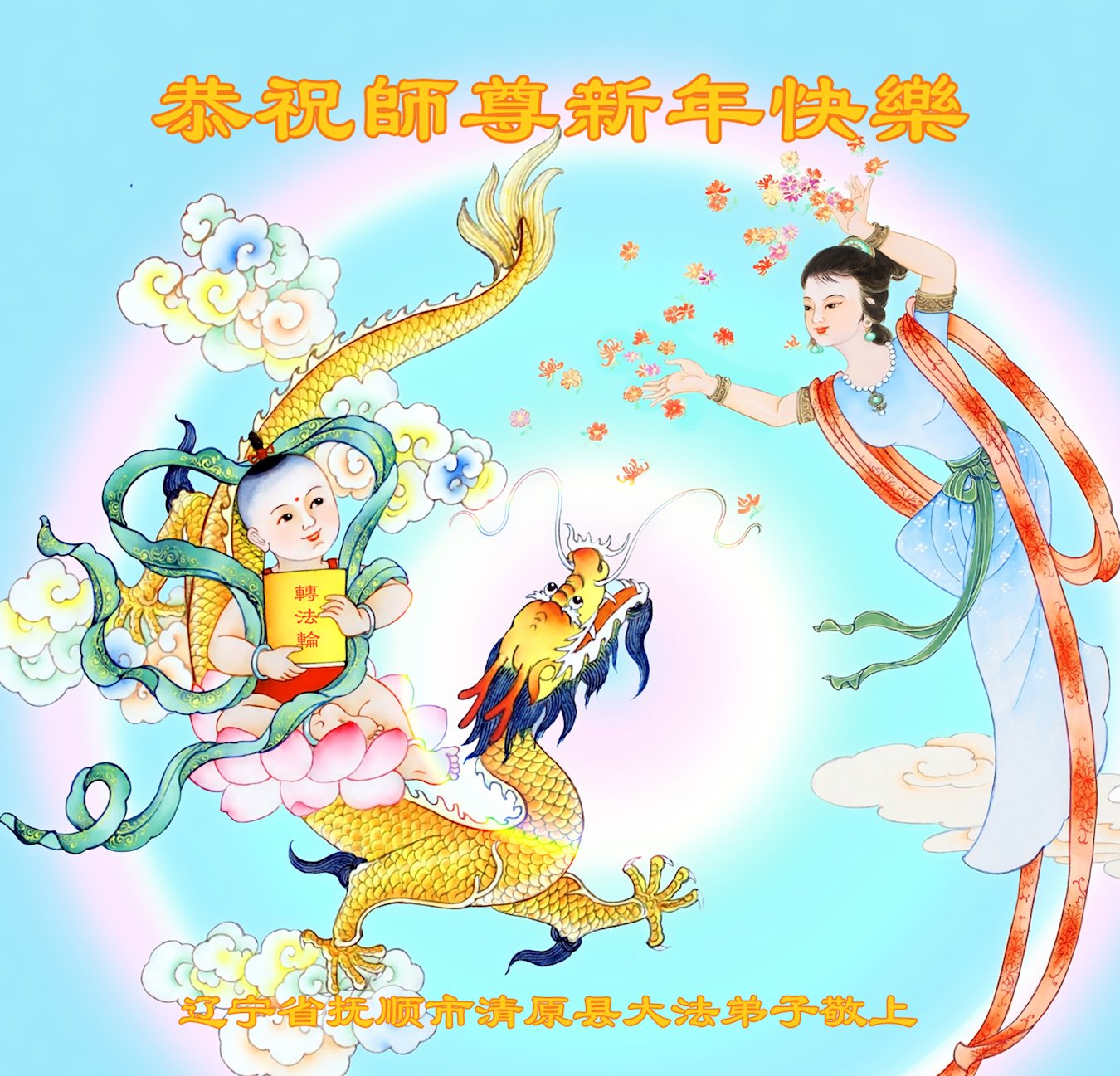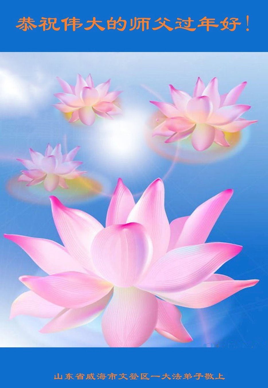 恭祝尊敬的师父新年快乐!希望我们能够提高心性和升华,帮助师父救度众生。