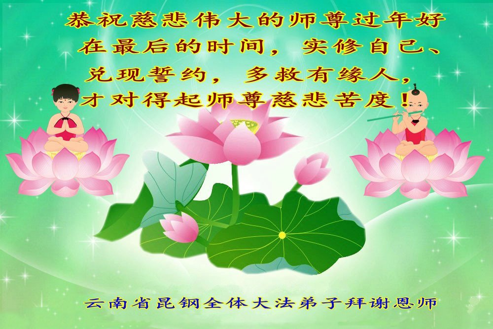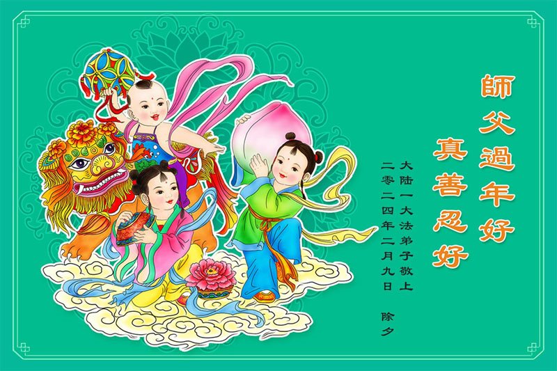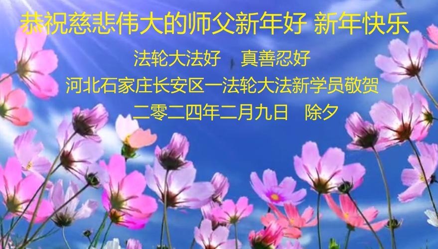 【明慧网二零二四年二月十三日】(明慧网记者综合报道)随着师尊正法洪势的推進,更多的众生在觉醒。尽管走向末路的中共还在迫害法轮功,也挡不住明白真相、有缘的民众入道得法,走上返本归真之路。二零二四年过年期间,华北、东北、华东、中南、西南等中国各地区新入门的法轮大法学员诚敬的给李洪志师尊拜年!感谢师尊救度!