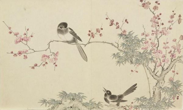 ![]() 清 董诰《平安春喜·梅竹双鹊》。(公有领域) |