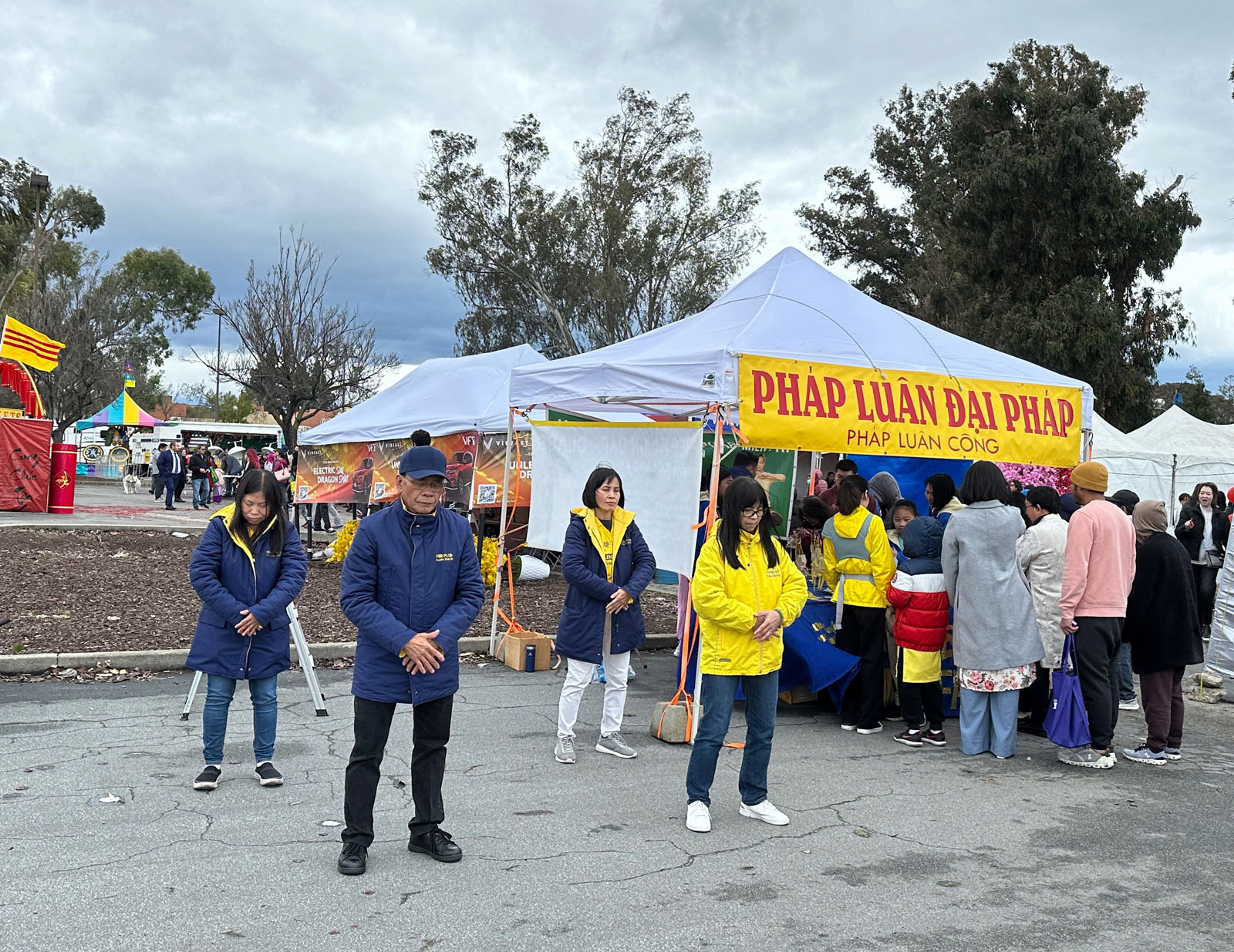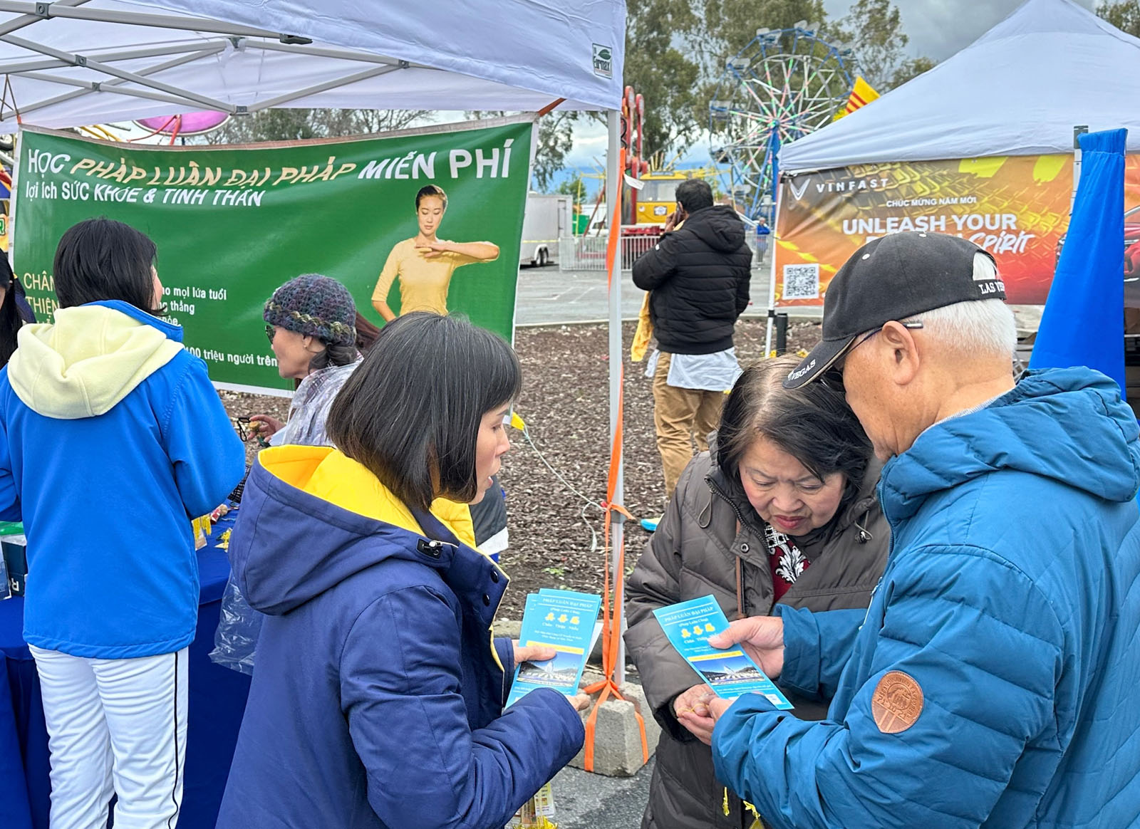 图3~4:二零二四年二月十六日至十八日,硅谷越南裔法轮功学员在圣荷西越南社区庆祝新年街会中,设立展位,向人们传播法轮功的美好和真相。