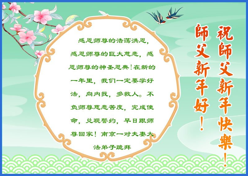 在这农历新年来临之际,我们遥祝师父新年快乐!新年好!我们一定学好法,广传真相多救人,兑现下世前与创世主的约定。