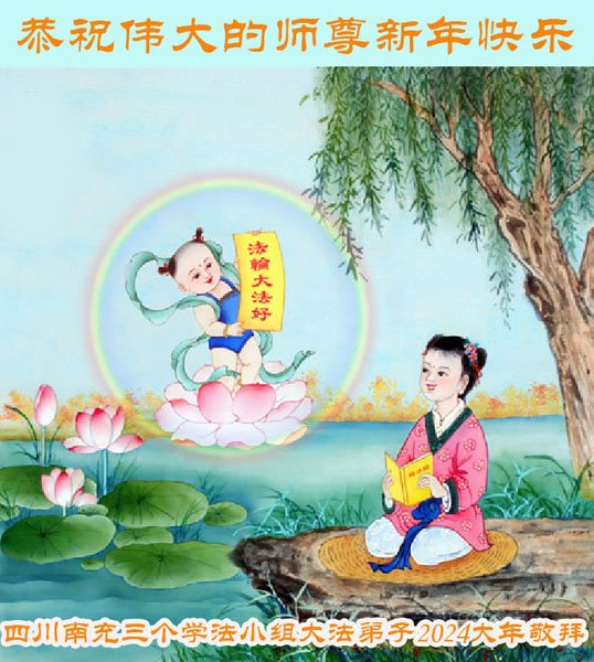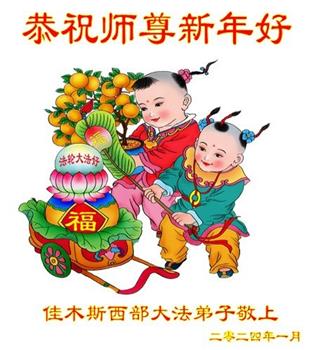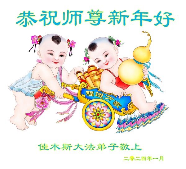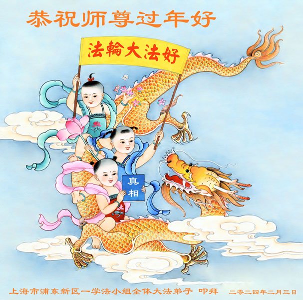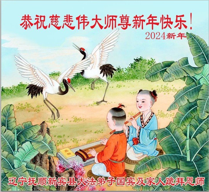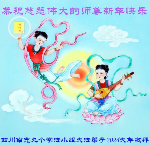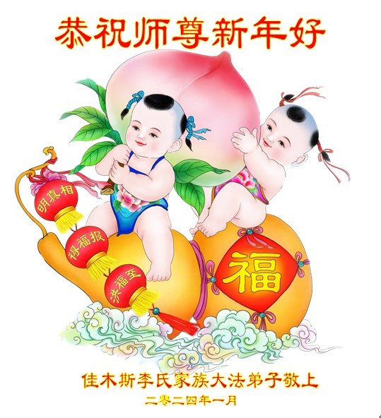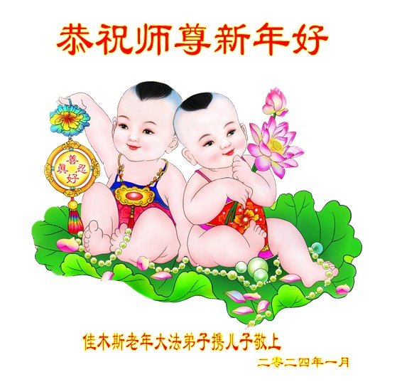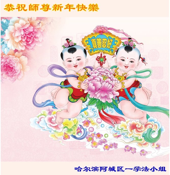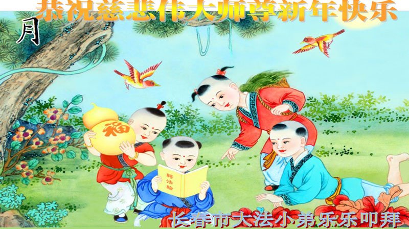 孙辈恭祝师父新年快乐!他们常到佛堂敬拜师父,诚心敬念法轮大法好!真善忍好!师父好!