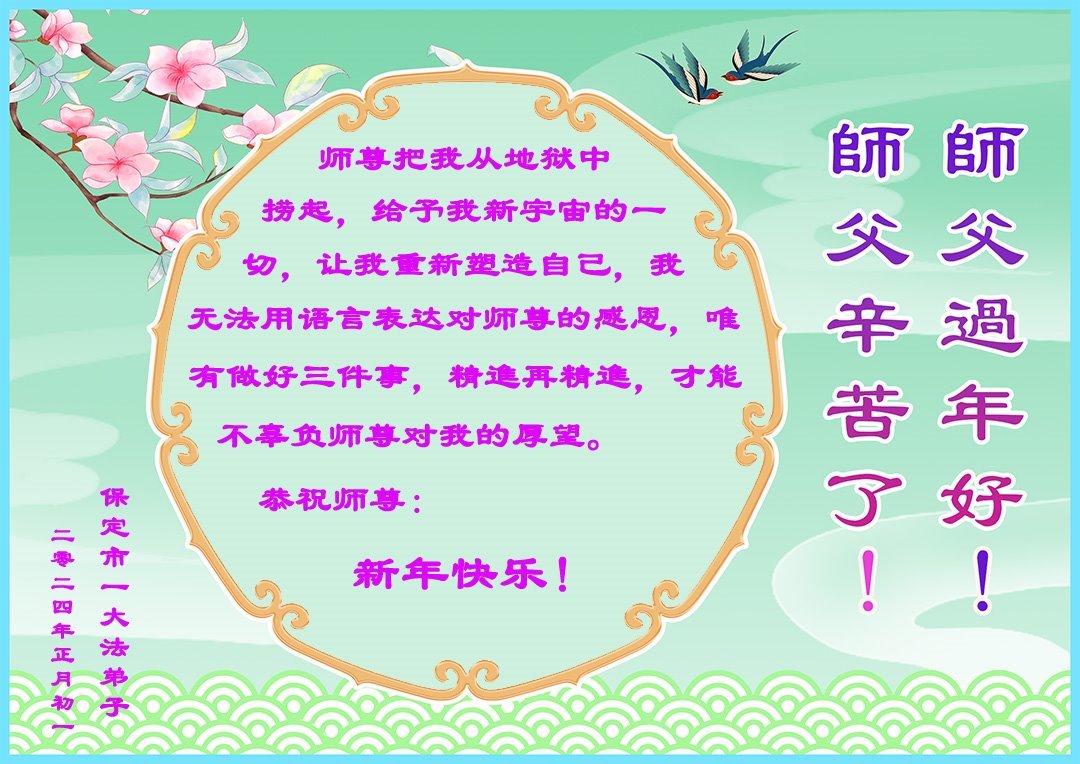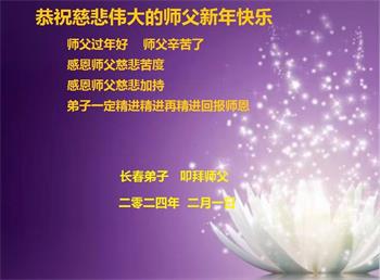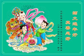 我从心里感谢李大师,也从心里感谢一直对我很关心的法轮功学员。恭祝李大师新年快乐!给李大师拜年!