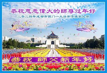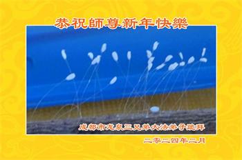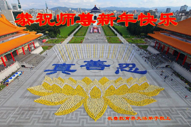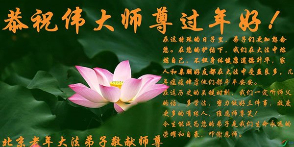 ・二零零一年除夕前一天,明慧网首次发表一张美国华盛顿特区大法弟子给李洪志师父拜年的图片。