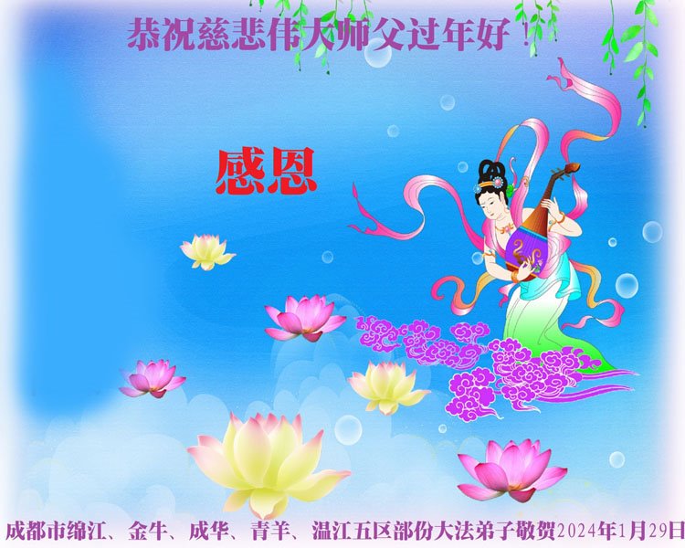 新年到来之际,弟子们及家人向慈悲伟大的师父表达诚挚的感恩,向师父致以新年的美好祝福!感恩师父慈悲救度,再救之恩!谢谢师父!